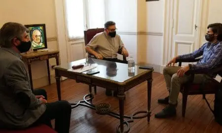 El jefe de la bancada radical junto a su par Fabian Bastía, le presentaron al arzobispo de Rosario el proyecto sobre el...