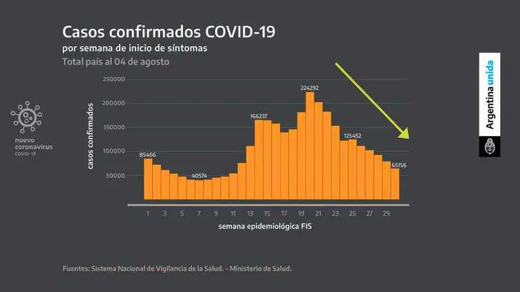 En el inicio de su mensaje, el Presidente sostuvo que “hace 10 semanas consecutivas que baja la cantidad de casos. Hace ocho semanas consecutivas que bajan los fallecimientos y las internaciones en terapia intensiva. Hace tres semanas no hay ningún aglomerado urbano en Alarma epidemiológica y sanitaria” y puso énfasis en se está logrando retrasar el ingreso de la variante Delta a la Argentina que ya está en 135 países”.