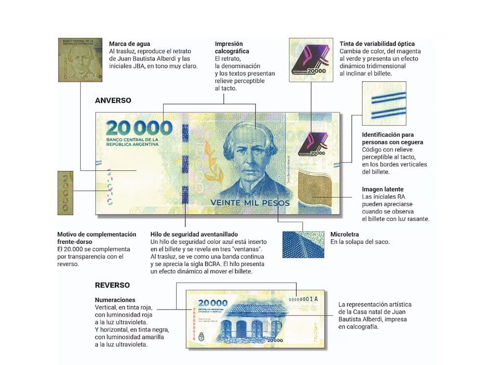 El BCRA destacó que este nuevo billete completa la familia «Heroínas y Héroes de la Patria», creada en 2022. En el anverso del billete se presenta la imagen de Juan Bautista Alberdi, mientras que el reverso ilustra la recreación de la casa natal del abogado, escritor, periodista, filósofo, economista, diplomático y político argentino.