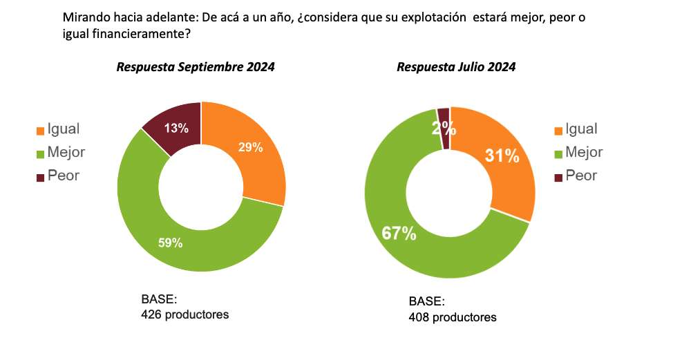 El futuro para los productores está marcado principalmente por su situación financiera para los próximos 12 meses. Y para la última medición, el descenso registrado es del 11% (146 vs 164).