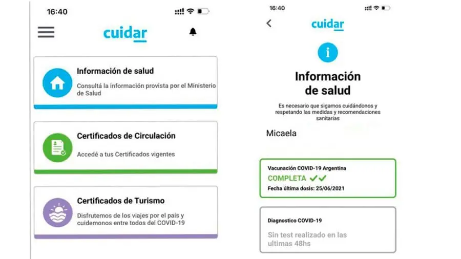 Ante este requerimiento, establecido por la decisión administrativa 1198/2021 firmada por Manzur y la ministra de Salud, Carla Vizzotti, la aplicación «Cuidar» será una de las formas más sencillas de acceder al Pase, ya que desde allí se puede visualizar si la persona está vacunada, con cuántas dosis y si las recibió en el país o en el exterior.