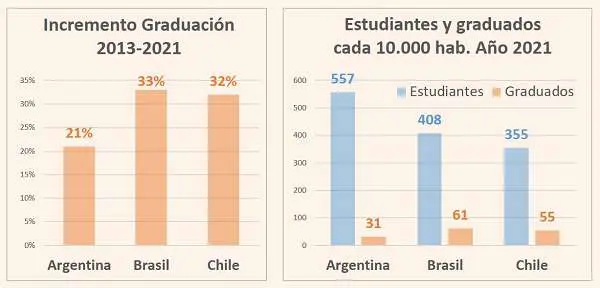 - “Chile y Brasil tuvieron mayor graduación anual y mayor crecimiento en cantidad de graduados que Argentina en los últimos años.”