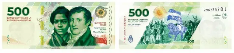 - En el billete de $500 estará Manuel Belgrano junto a Remedios del Valle.