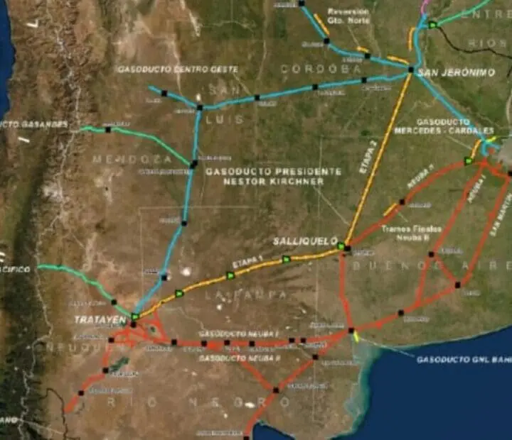 En la Etapa I el Gasoducto se extiende 563 kilómetros, desde la localidad neuquina de Tratayén a Salliqueló, en el oeste de la provincia de Buenos Aires, atravesando las provincias de Río Negro y La Pampa. Este primer tramo permitirá, simultáneamente, utilizar la disponibilidad que hay en otros tramos complementarios, aumentando rápidamente el abastecimiento al principal centro de consumo . En su Etapa II, el ducto cubrirá el tramo entre Salliqueló hasta San Jerónimo (Santa Fe) y permitirá aumentar en un 25 por ciento la capacidad de transporte de los gasoductos troncales de nuestro país.
