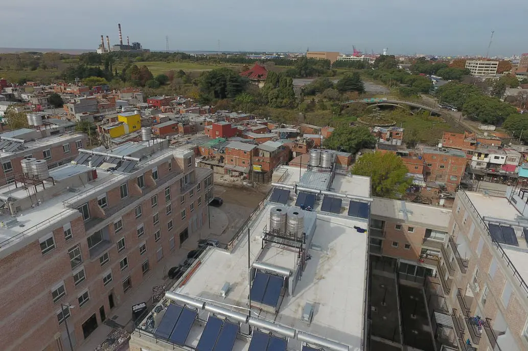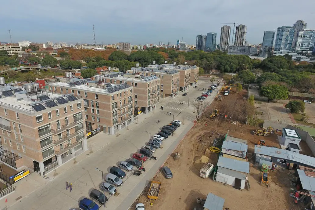 Los 612 departamentos de los 46 edificios cuentan con agua corriente, electricidad, cloacas y desagües pluviales. También tienen calefones solares para reducir el consumo de energía. Se generarán nuevos espacios públicos y un playón gastronómico para potenciar los emprendimientos de los vecinos.
