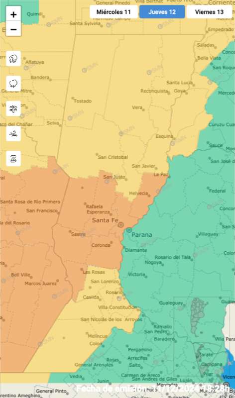 El Servicio Meteorológico Nacional (SMN) emitió alerta meteorológica de nivel amarillo ante la posibilidad de que se registren tormentas, algunas localmente fuertes, para los departamentos General López, Constitución, Iriondo, San Lorenzo y Rosario, durante la noche de este jueves 12 de diciembre.