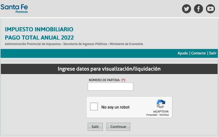Captura de pantalla del formulario del Impuesto Inmobiliario Pago Total Anual 2022.
