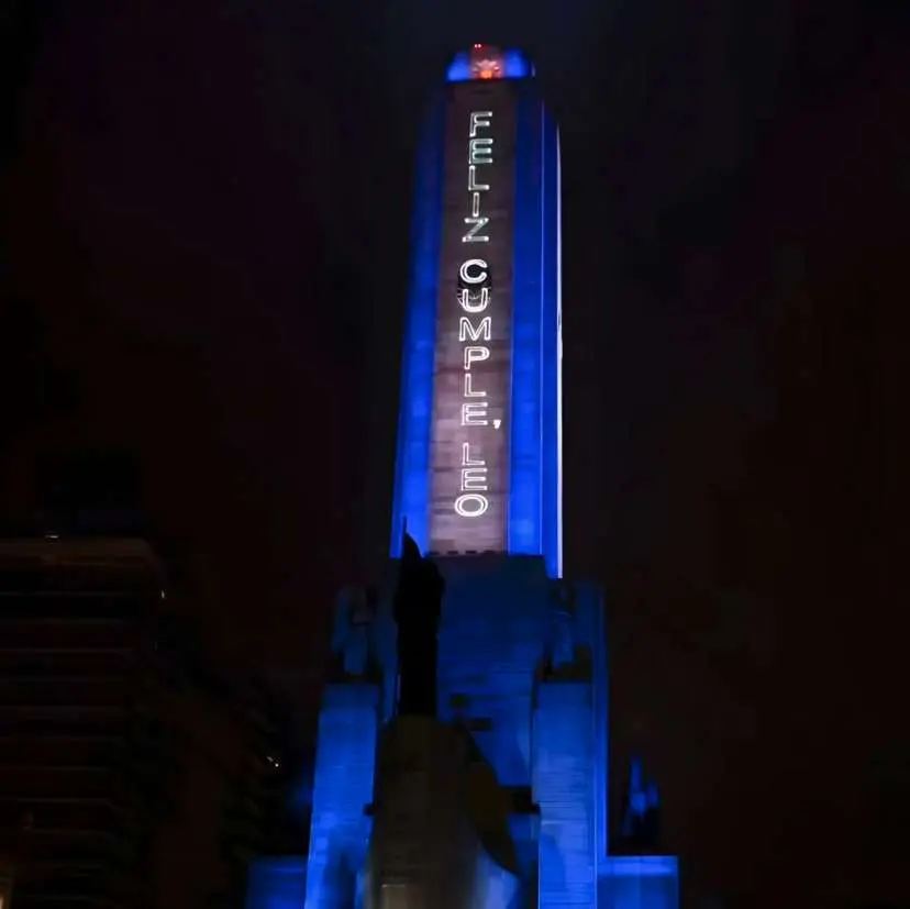 A las 00 hs de este sábado 24 de junio, el edificio emblema de la ciudad se iluminó de celeste y blanco con un saludo particular para el campeón del mundo en su cumpleaños número 36.