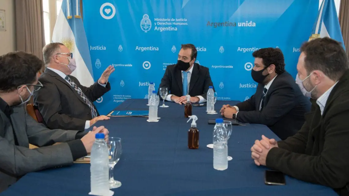 El ministro de Seguridad, Jorge Lagna, mantuvo este jueves por la mañana una reunión con el ministro de Justicia y Derechos Humanos de la Nación, Martín Soria, donde dialogaron sobre la ejecución de la campaña de desarme en la provincia y la puesta en marcha de un Centro de entrega de armas y municiones permanente en la ciudad de Rosario.