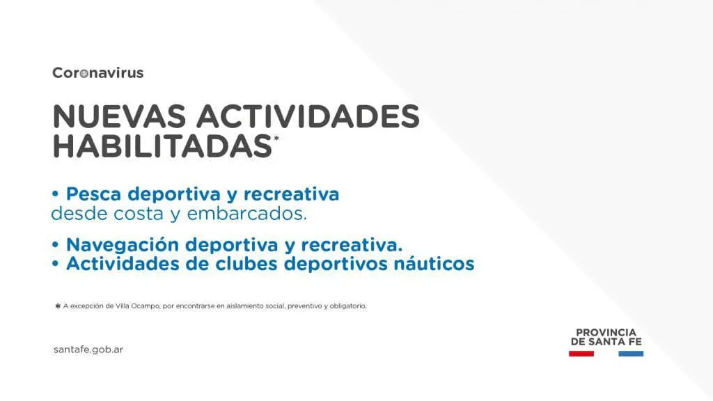 «En el día de la fecha vamos a dictar el decreto pertinente que habilita la actividad de las guarderías náuticas, que va a permitir el retiro y deposito de todas las embarcaciones. Esta actividad permitirá liberar la pesca deportiva para embarcados, en tanto que las embarcaciones deberán tener el 50% de su capacidad o el límite que imponga las normas de distanciamiento social que están vigentes en la provincia», detalló el funcionario.
