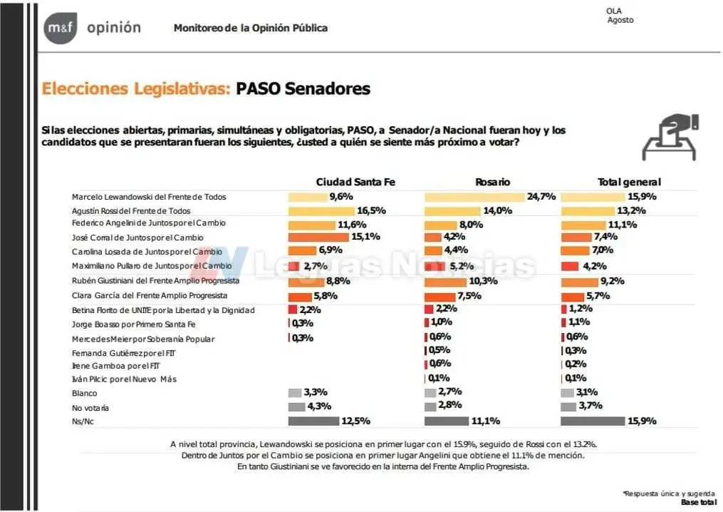 Según el consultor Federico González, en el FdT Agustín Rossi aventaja a Marcelo Lewandowski por 6,6 puntos porcentuales (gráfico abajo), una brecha que no es decisiva.