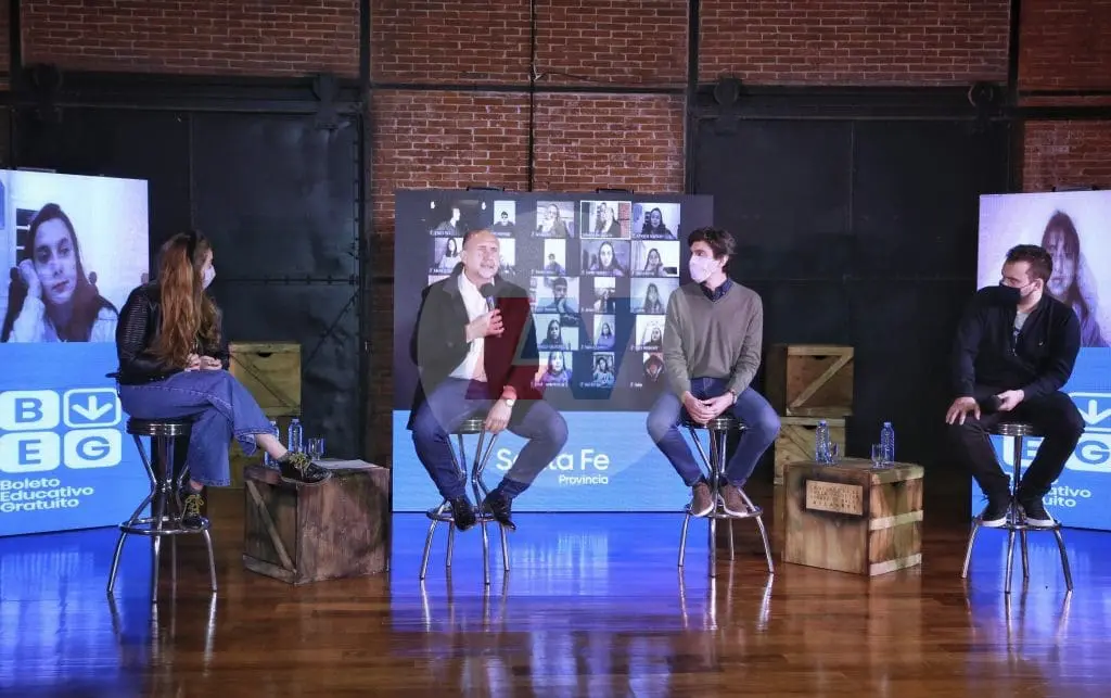 Durante el encuentro, llevado a cabo en el Galpón 15, acompañaron al gobernador el director provincial del Boleto Educativo Gratuito (BEG), Juan Rober Benegui; la coordinadora del programa ATR Juventudes, Milagros Monserrat; y el coordinador del Área de Participación Estudiantil del Ministerio de Educación, Lucas González Granata.