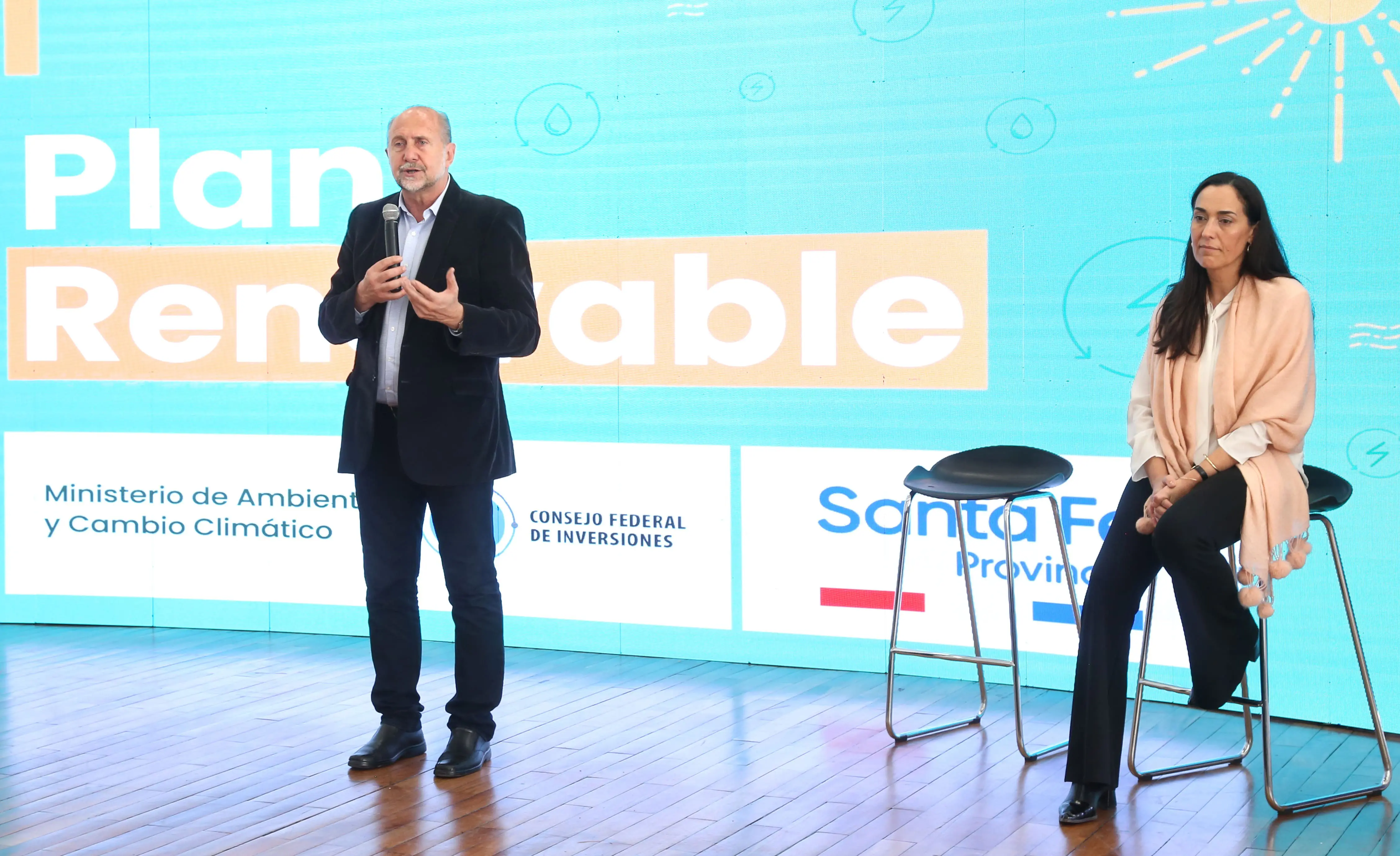 El gobernador Omar Perotti y la ministra de Ambiente y Cambio Climático, Érica Gonnet, encabezaron este lunes la presentación del Plan Renovable, una línea de créditos del Gobierno de Santa Fe y el Consejo Federal de Inversiones (CFI) que permitirá la incorporación de calefones solares y paneles solares en el marco de la transición energética santafesina.