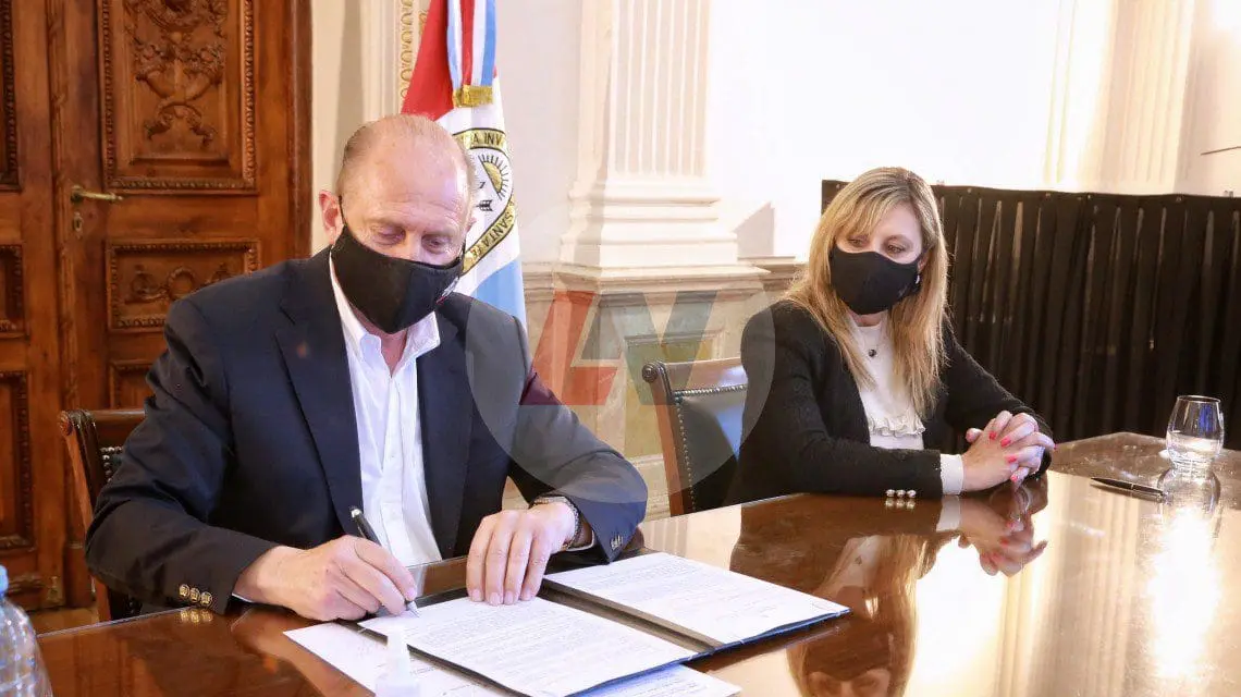 El gobernador Omar Perotti y el secretario de Energía de la Nación, Darío Martínez, encabezaron este viernes la firma de un convenio entre la provincia y el gobierno central, para reactivar y culminar obras de gas por más de 3.700 millones de pesos, que incluyen la reactivación del gasoducto Regional Centro y las ampliaciones del Regional Sur, Metropolitano y la red en la localidad de Fighiera.