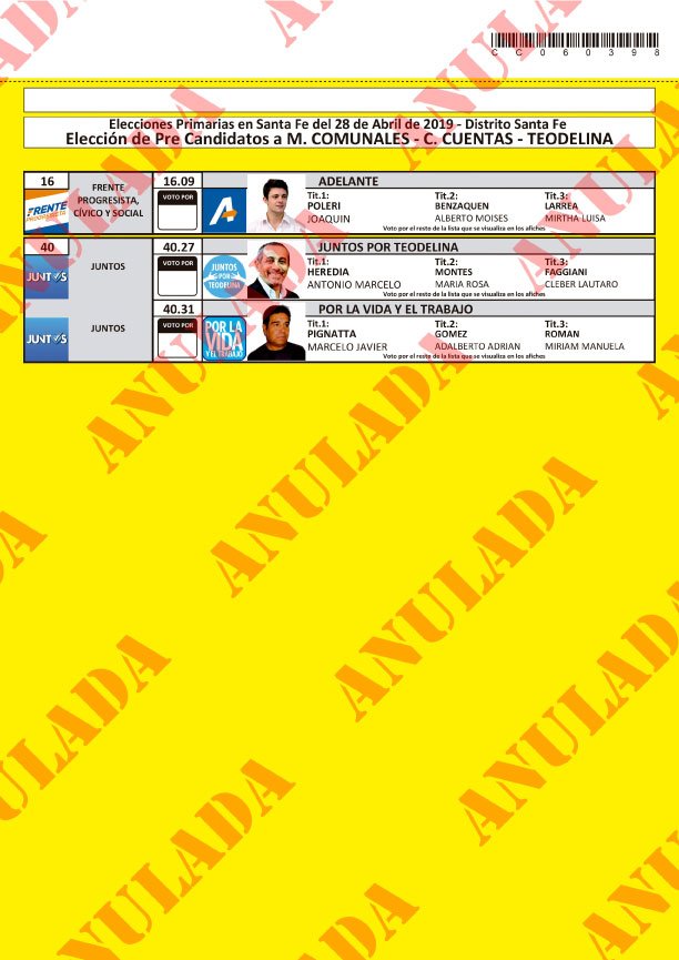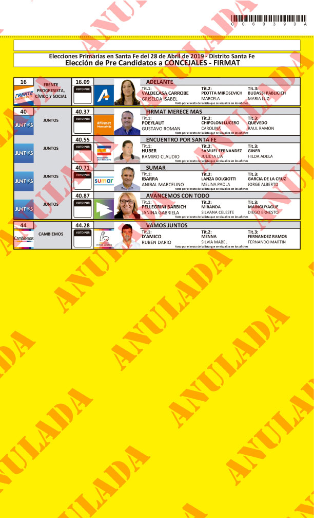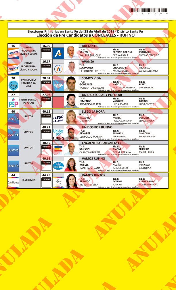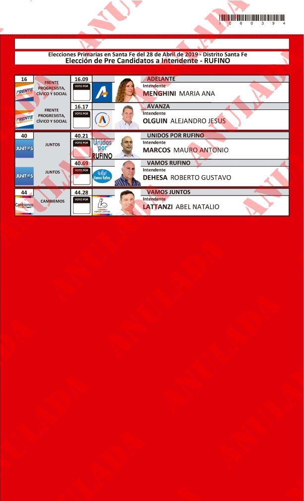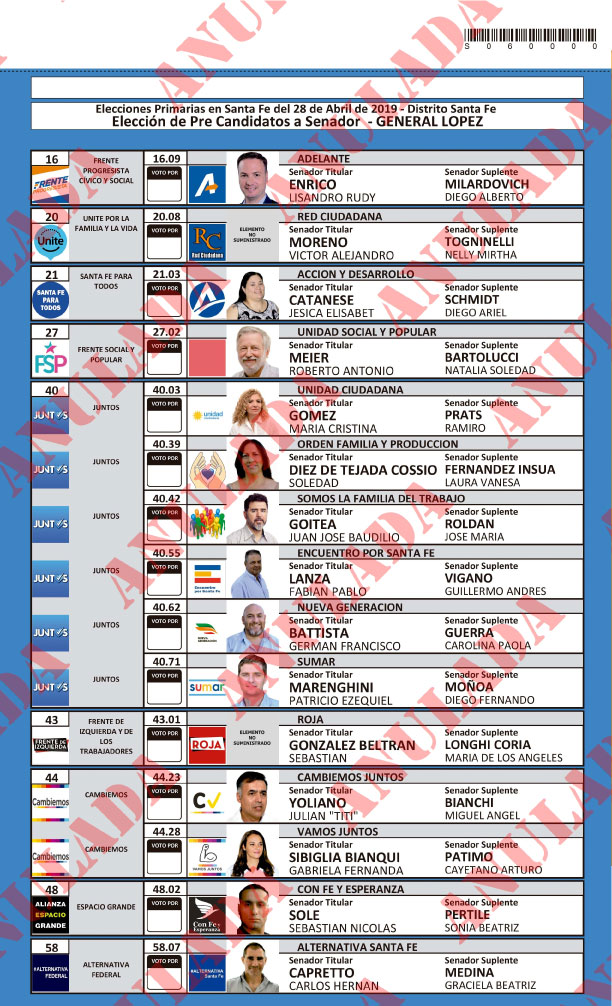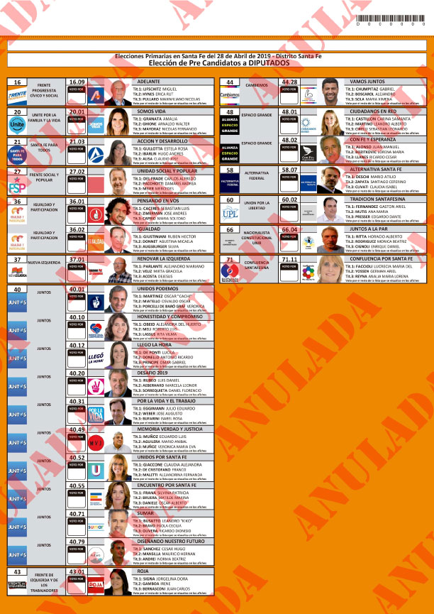 El Tribunal Electoral de Santa Fe publicó ayer en su sitio web las boletas únicas definitivas para las elecciones primarias, abiertas, simultáneas y obligatorias (Paso), que se realizarán el 28 de abril próximo.