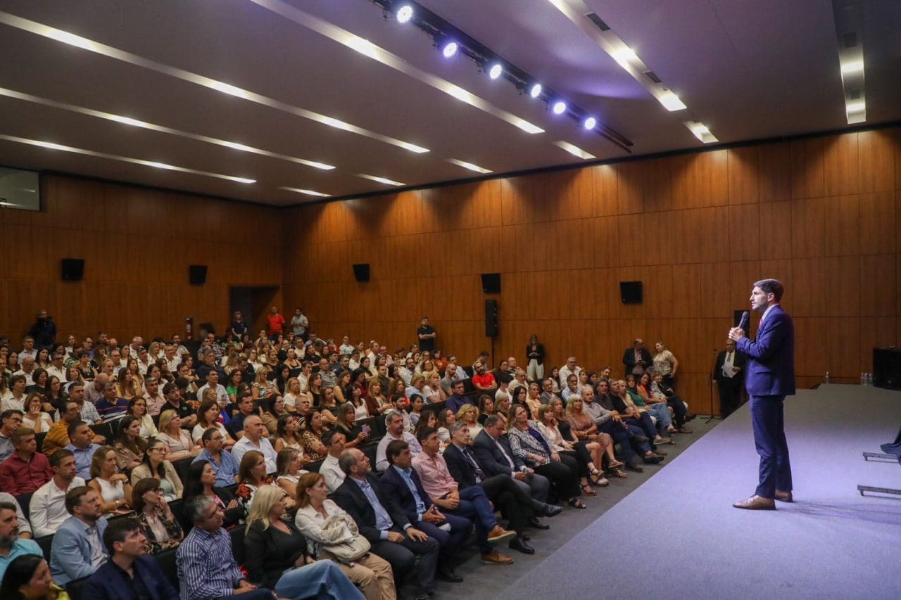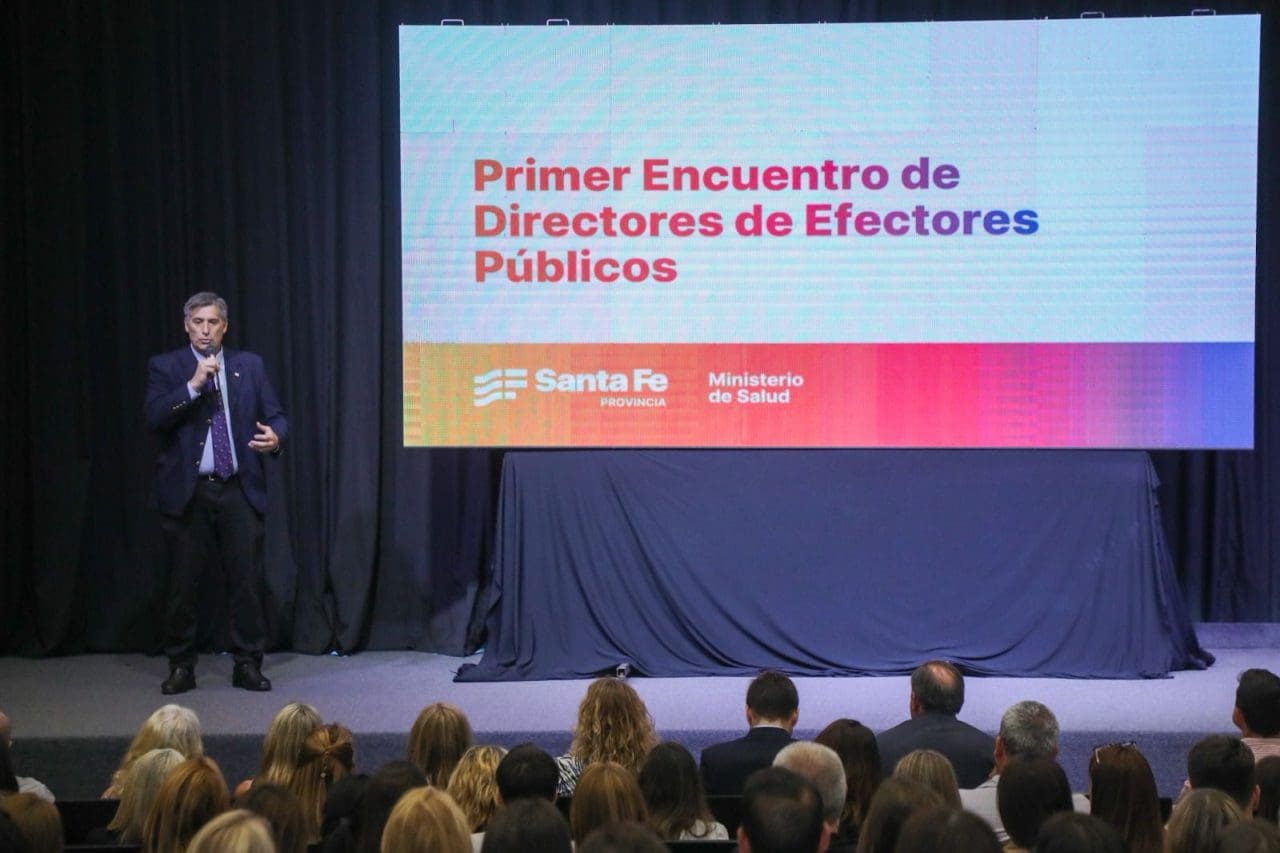 El gobernador Maximiliano Pullaro, junto a la ministra de Salud, Silvia Ciancio, y el ministro de Economía, Pablo Olivares, encabezó este martes el Primer Encuentro de Directores y Directoras de Efectores Públicos, que se realizó en la ciudad de Santa Fe y sirvió para presentar el Programa de Fortalecimiento de la tarea profesional para el sector, que llevará adelante el Gobierno provincial.