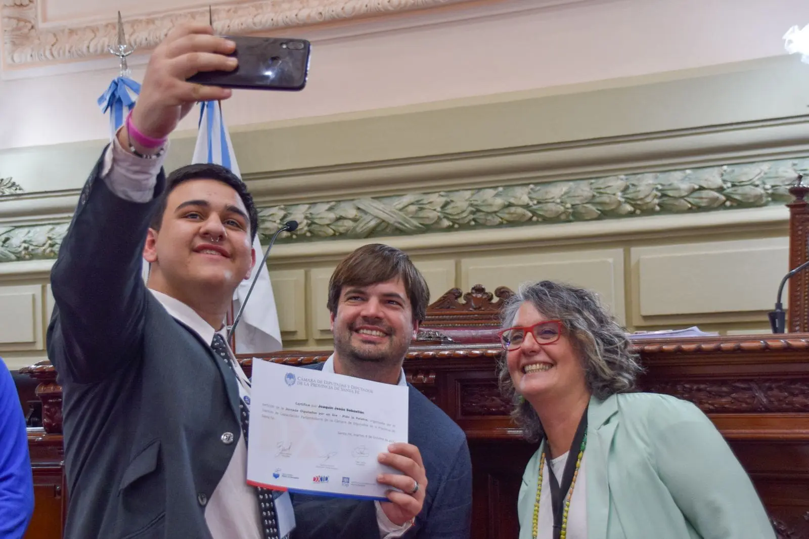 Otro distintivo con el que contó la jornada fue la participación de cuatro estudiantes de la carrera de Periodismo y Comunicación del Instituto Dante Alighieri de Venado Tuerto, quienes compartieron la jornada con todo el contingente regional. Además de conocer el edificio de la legislatura, pudieron presenciar la actividad desde el palco que utiliza la prensa habitualmente para cubrir las sesiones ordinarias.
