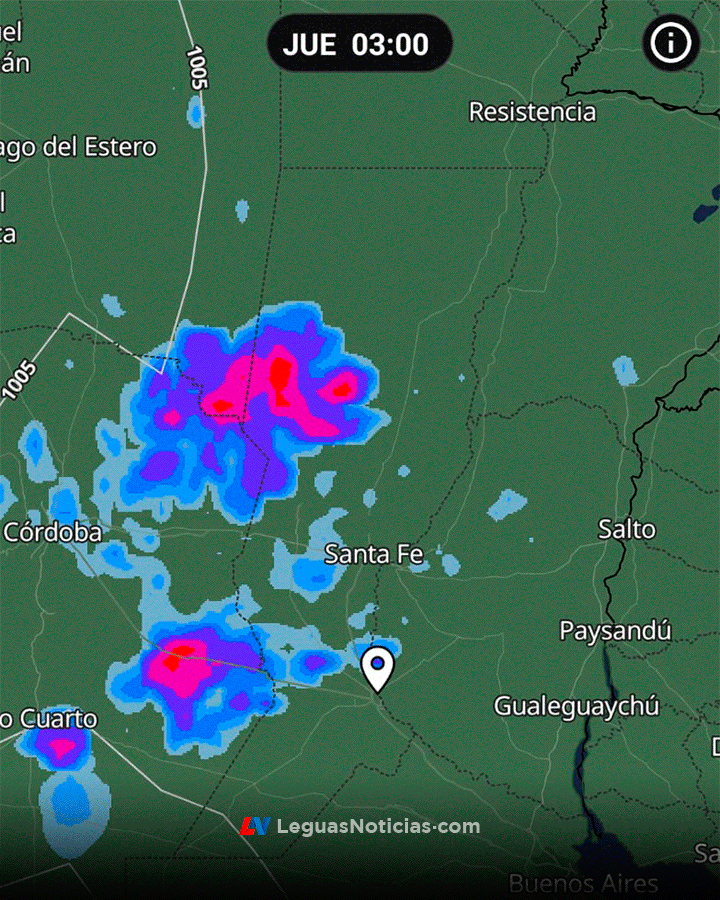 El jueves será el día más complejo en materia meteorológica. Las tormentas comenzarán durante la mañana en el sur provincial, particularmente en los departamentos General López y Caseros, y se intensificarán por la tarde en Rosario y la región. Hacia la noche, el sistema de tormentas se desplazará hacia el norte de la provincia.