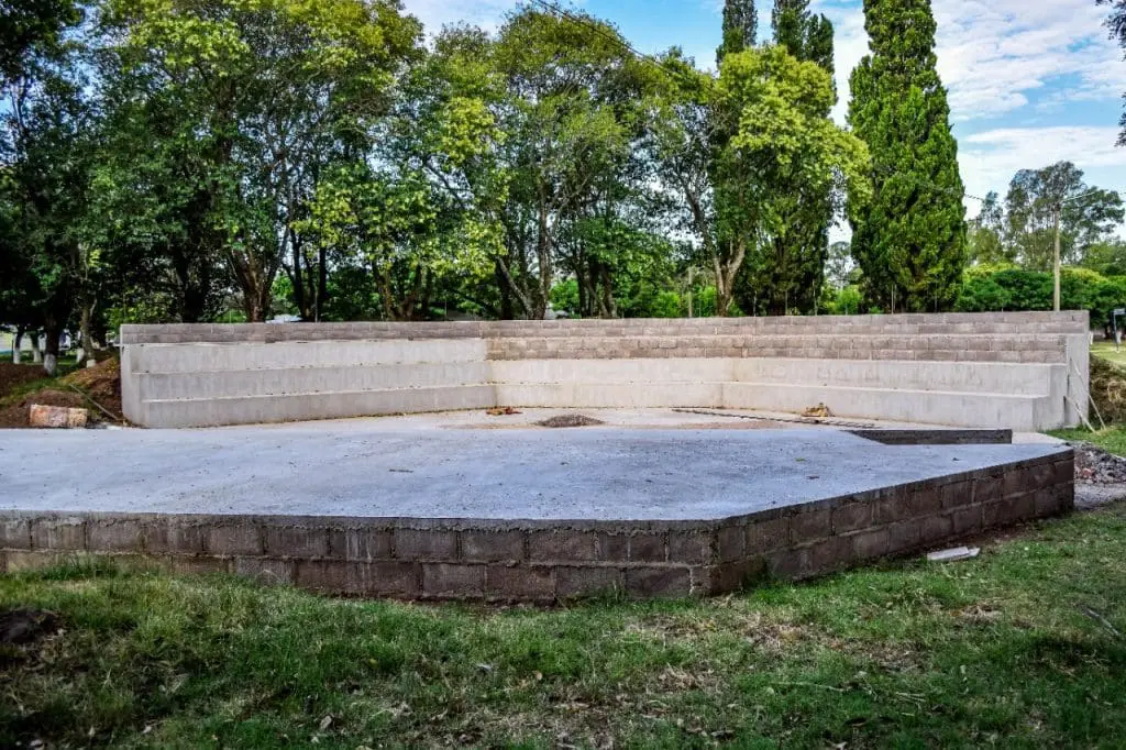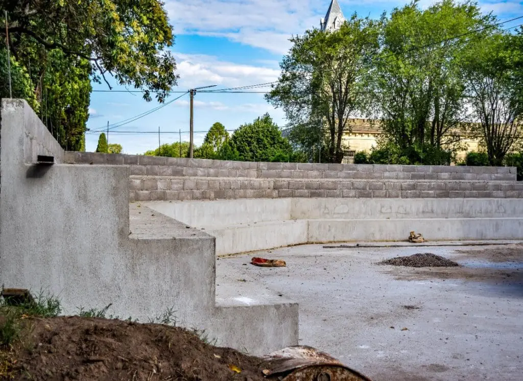“El anfiteatro se está construyendo en la Plaza San Martín de Aarón Castellanos y tendrá una capacidad aproximada para recibir a 200 personas sentadas, con un escenario donde se podrán brindar espectáculos y realizar eventos; un espacio que estará disponible para que las instituciones del pueblo puedan utilizar”, indicó el senador provincial Lisandro Enrico.