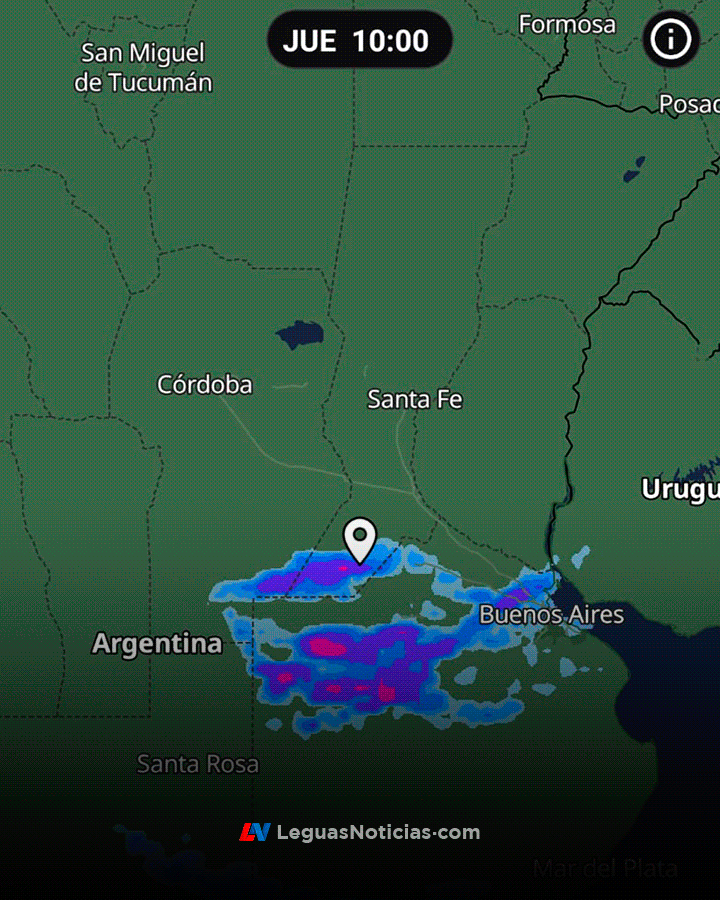 Según el organismo nacional, “el área será afectada por lluvias y tormentas de variada intensidad, algunas localmente fuertes”. El informe detalla que estos eventos podrían provocar abundante caída de agua en cortos lapsos, actividad eléctrica frecuente, ráfagas superiores a 75 kilómetros por hora y ocasional caída de granizo. Los valores de precipitación acumulada previstos oscilan entre 40 y 70 milímetros, aunque no se descartan registros superiores en sectores puntuales.