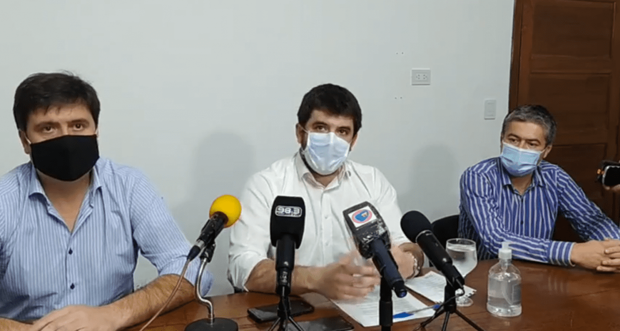 El intendente Leonel Chiarella secundado por el jefe de gabinete Diego Milardovich y el secretario de Salud Dr. Marcelo Krenz, dió a conocer las nuevas medidas para poder amortiguar la situación ante el brote de casos de coronavirus en la ciudad y un posible colapso en el sistema de salud, y muchas camas ocupadas con bajas médicas por contagios que debilitan la atención.