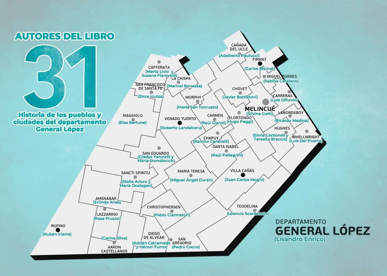 El domingo 12 de diciembre se presentará en la Asociación Española de Venado Tuerto “31 – Historia de los pueblos y ciudades del Departamento General López”, el libro impulsado por el senador Lisandro Enrico que relata los sucesos más significativos de cada localidad, desde sus comienzos hasta la actualidad, y que tiene la particularidad de estar contado por sus propios habitantes.