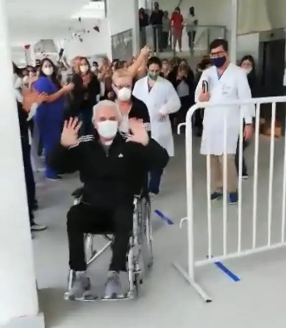 Un cerrado y conmovedor aplauso le brindaron, el personal médico y familiares y amigos, al único paciente internado en la terapia intensiva del hospital provincial Gutiérrez de Venado Tuerto por coronavirus. Se trata de Héctor Chiarotto quien estuvo internado y asistido con respirador desde el 1 de abril y este mediodía fue dado de alta. Emoción y lágrimas dominaron el paisaje hospitalario del efector público venadense.