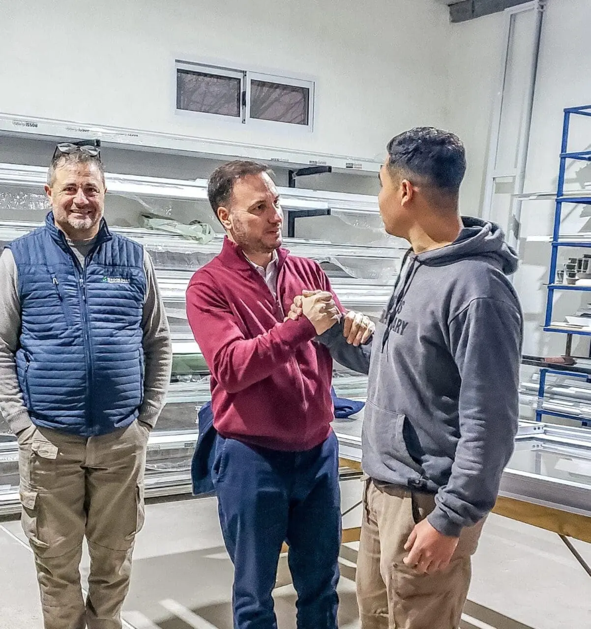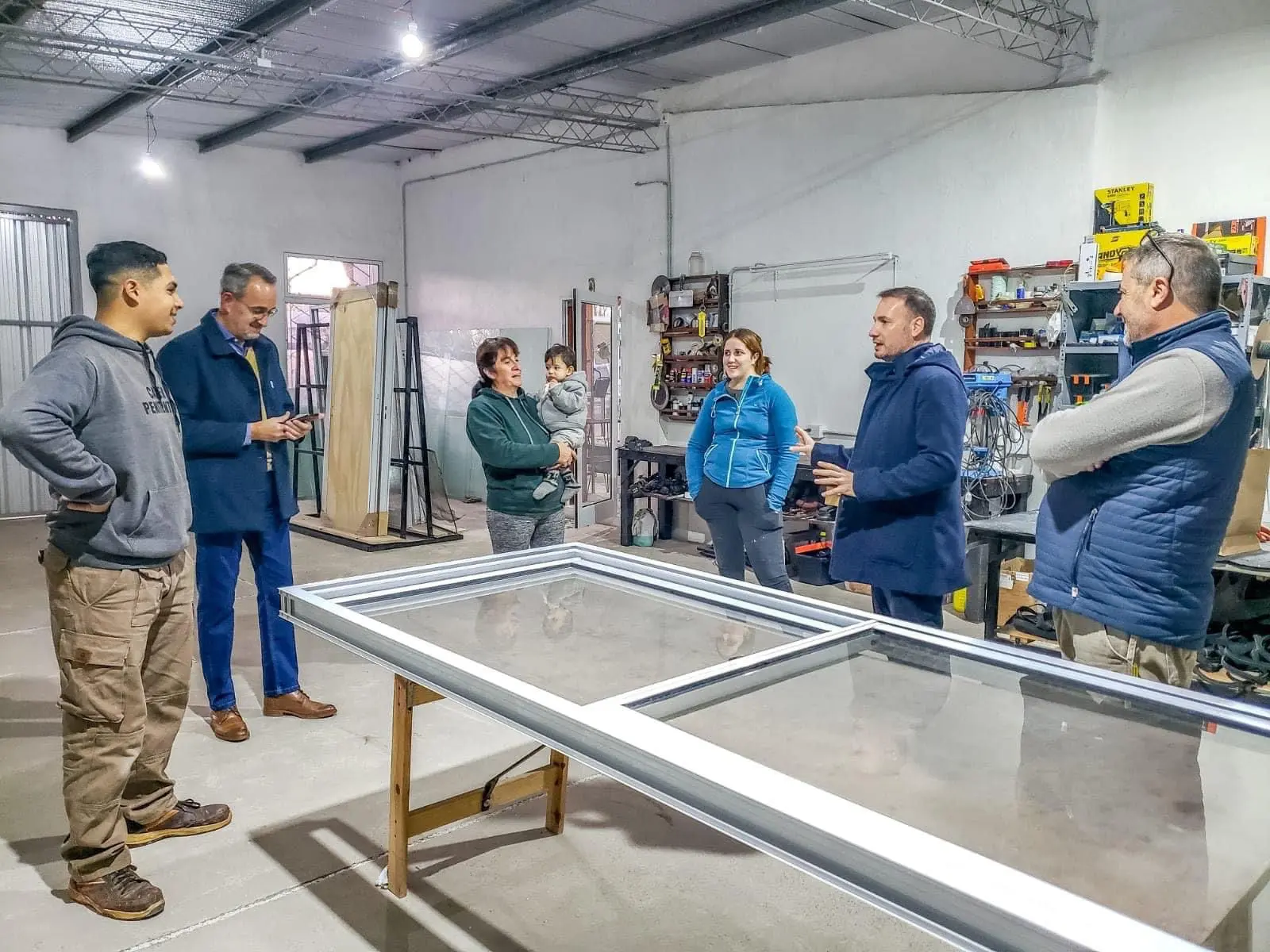 Por otro lado, Lisandro Enrico junto a Cesar Bainotti visitaron la fábrica de aberturas “9 de julio”, un emprendimiento familiar que lleva casi dos años en funcionamiento. “Luego de trabajar durante mucho tiempo haciendo refacciones en casas particulares, esta familia decidió comenzar con una pequeña empresa que hoy sigue creciendo en el pueblo. Los visitamos y nos pusimos a disposición para acompañar su trabajo”, comentó Enrico.