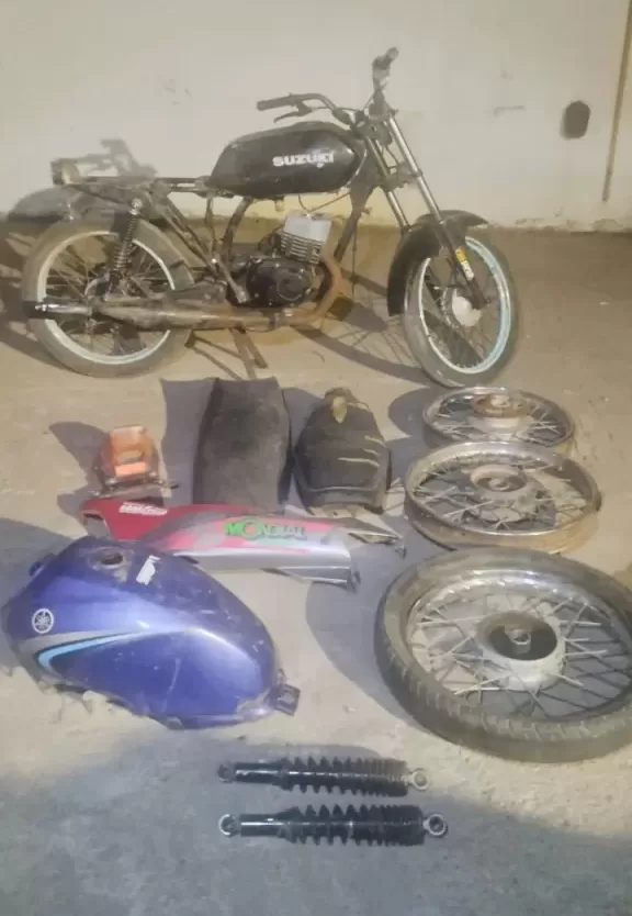 En el lugar no se encontró morador alguno pero procedieron al secuestro de plantas de Cannabis Sativa, en proceso de secado y picado, una bolsita con cocaína, un electrificador electrónico, tres llantas de moto, una con cubierta, dos asientos de moto, un tanque de moto, dos amortiguadores, una cacha de plástico de Mondial, un guardabarros de plástico, una luz trasera y una moto marca Suzuki color negro con el número de motor limado.