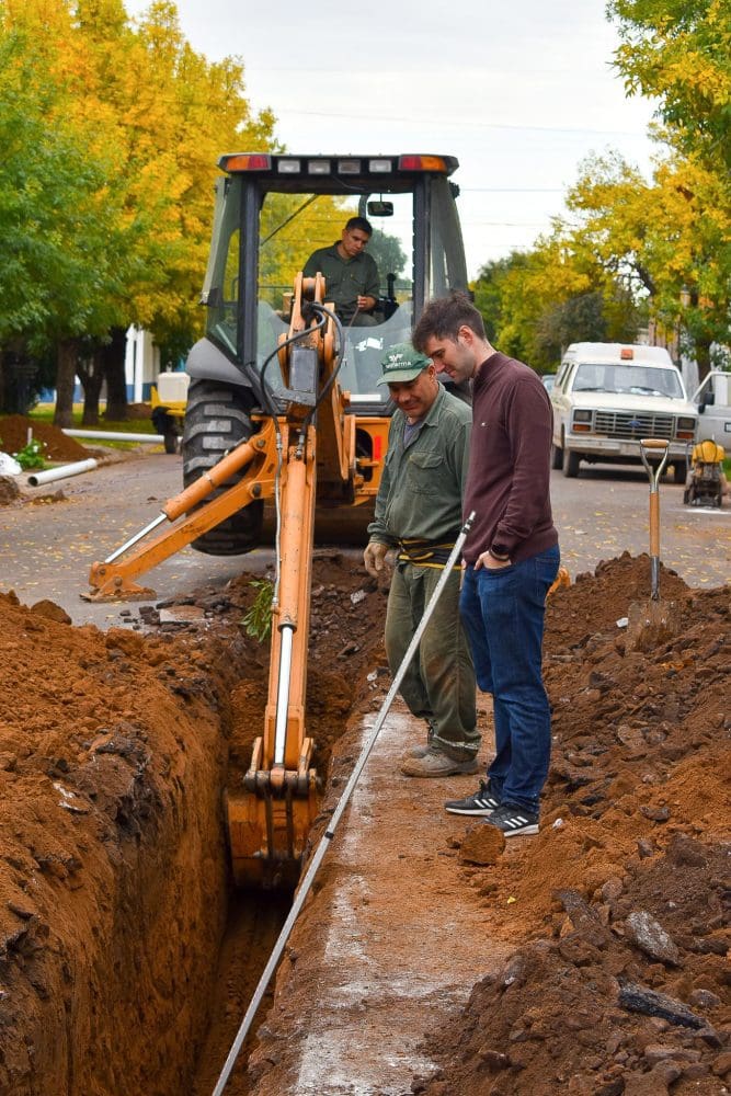 Para sostener el ritmo de obra y evitar demoras, la Comuna adquirió una máquina especialmente destinada al tendido de tuberías y la compactación del terreno, lo que permite avanzar de manera más eficiente.