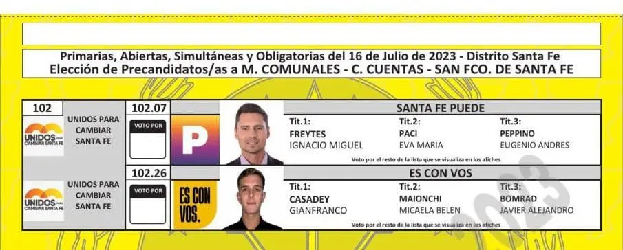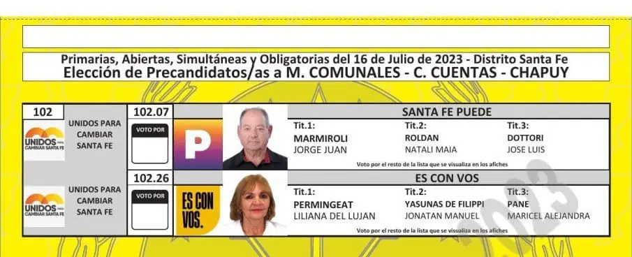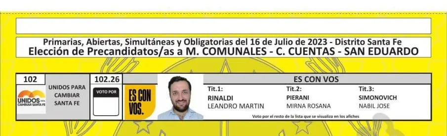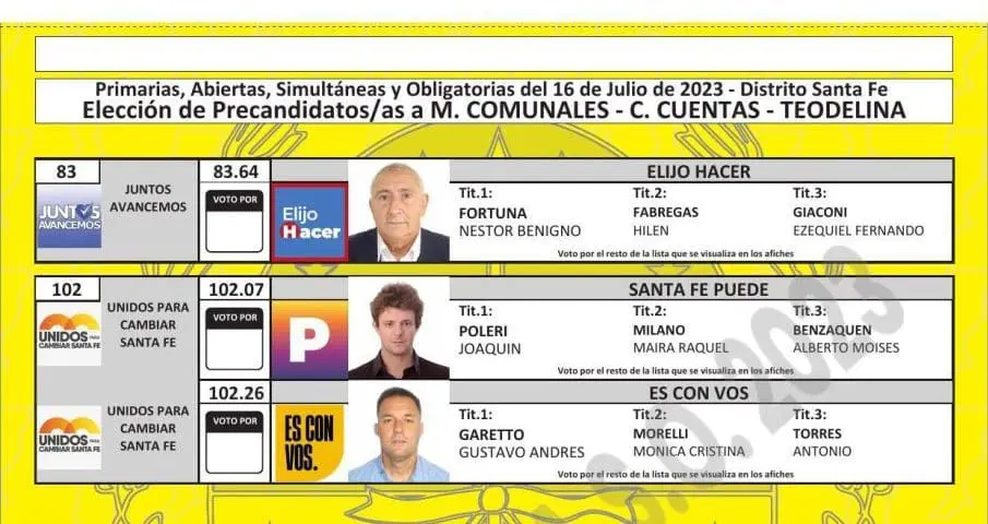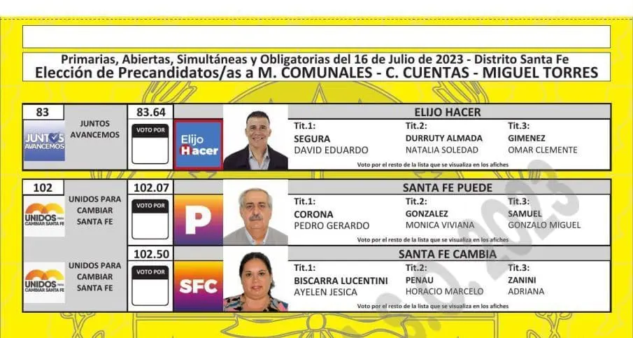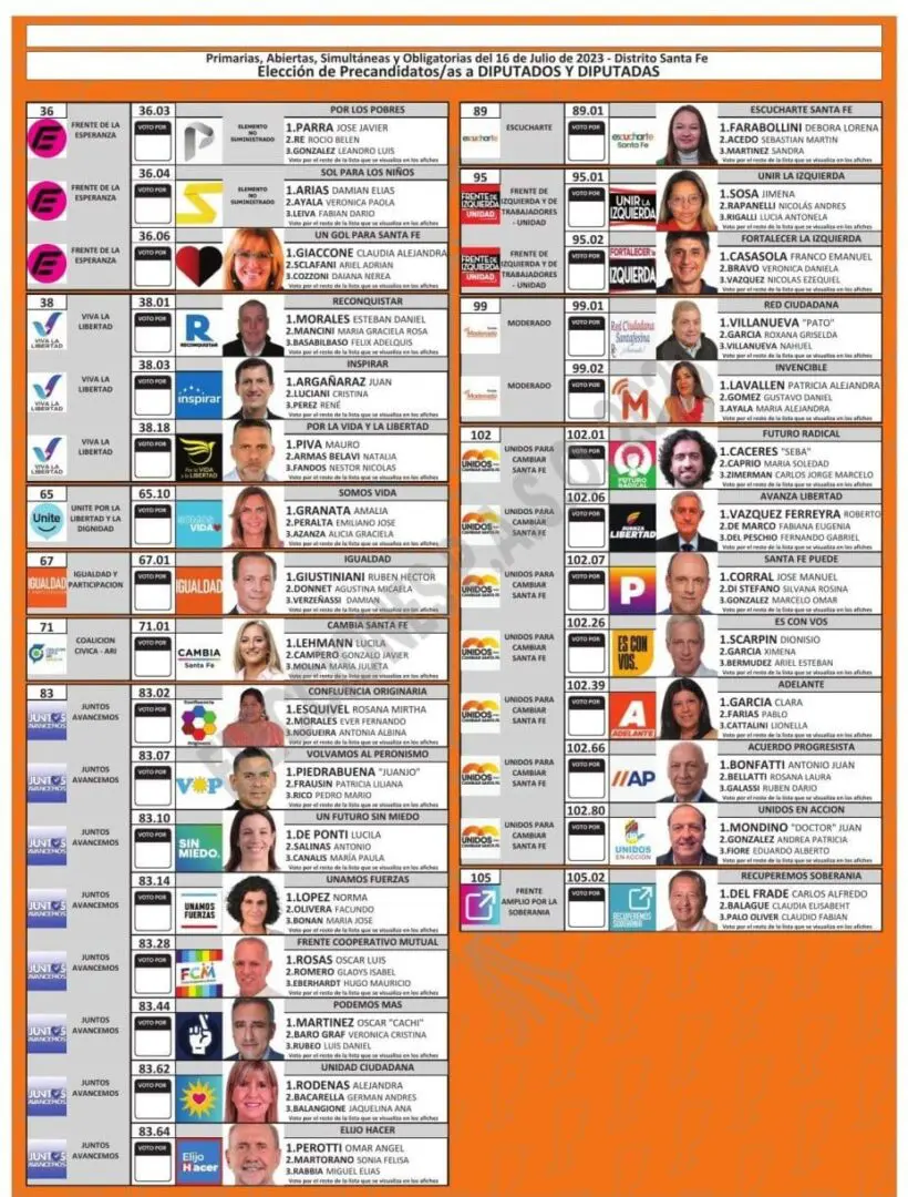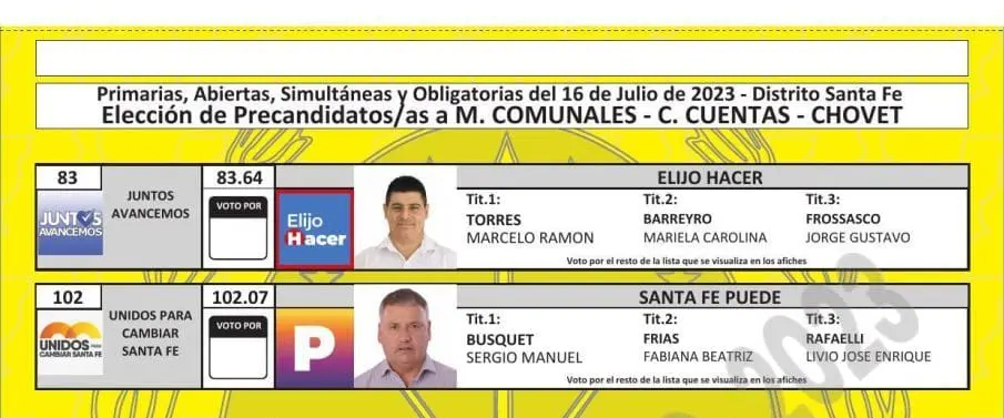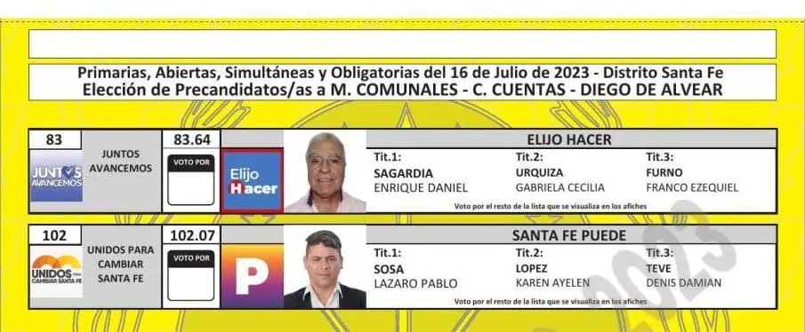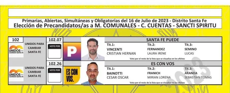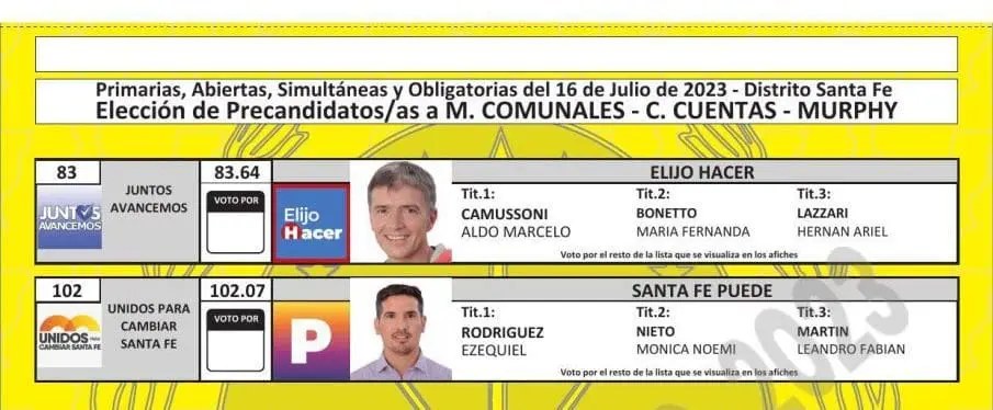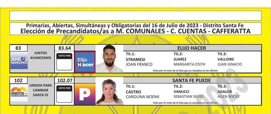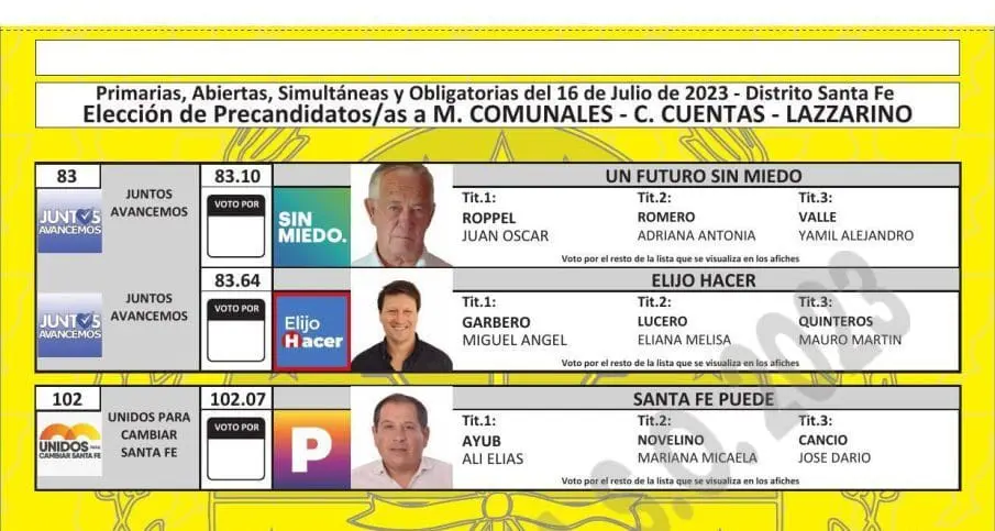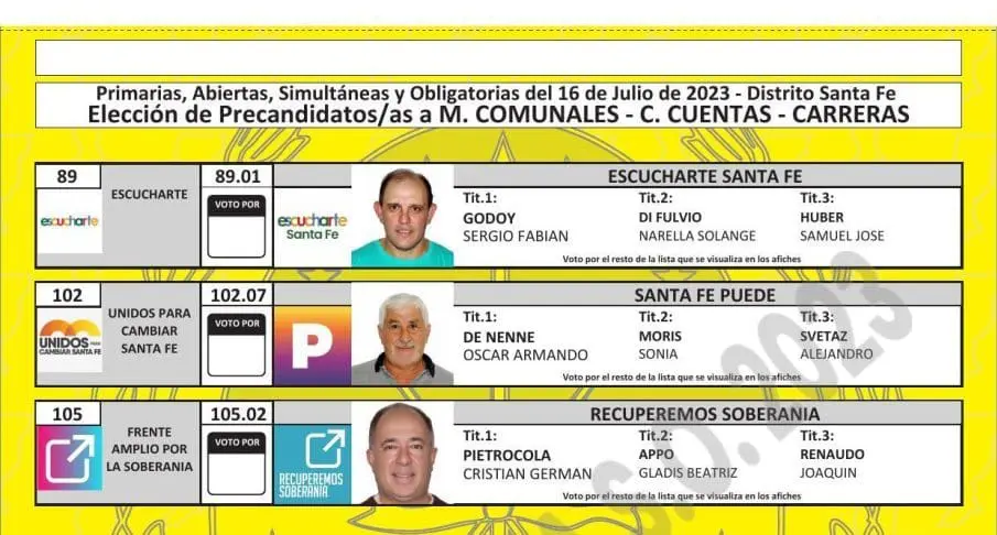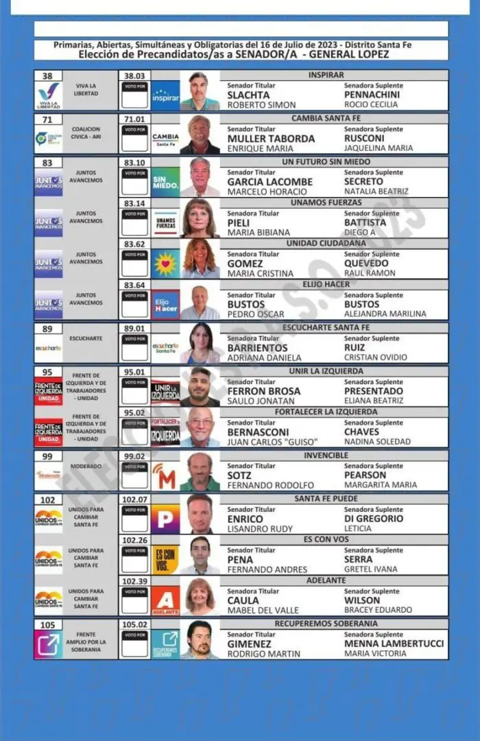 El Tribunal Electoral de Santa Fe difundió las boletas que se utilizarán en las PASO del próximo 16 de julio, donde se elegirán los candidatos que van a participar en las generales del 10 de septiembre en las categorías gobernador, diputados, senadores, intendentes, concejales y comisiones comunales.