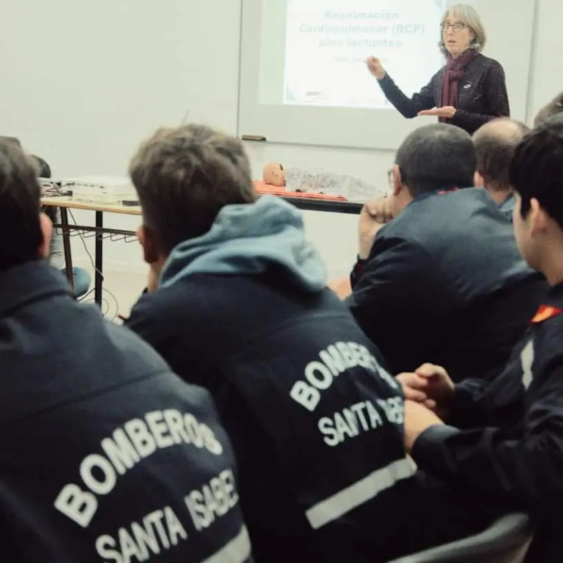 Además de las tres jornadas abiertas a madres, padres y comunidad en general, en Santa Isabel se realizó una nueva capacitación enfocada exclusivamente a los Bomberos Voluntarios de la localidad.