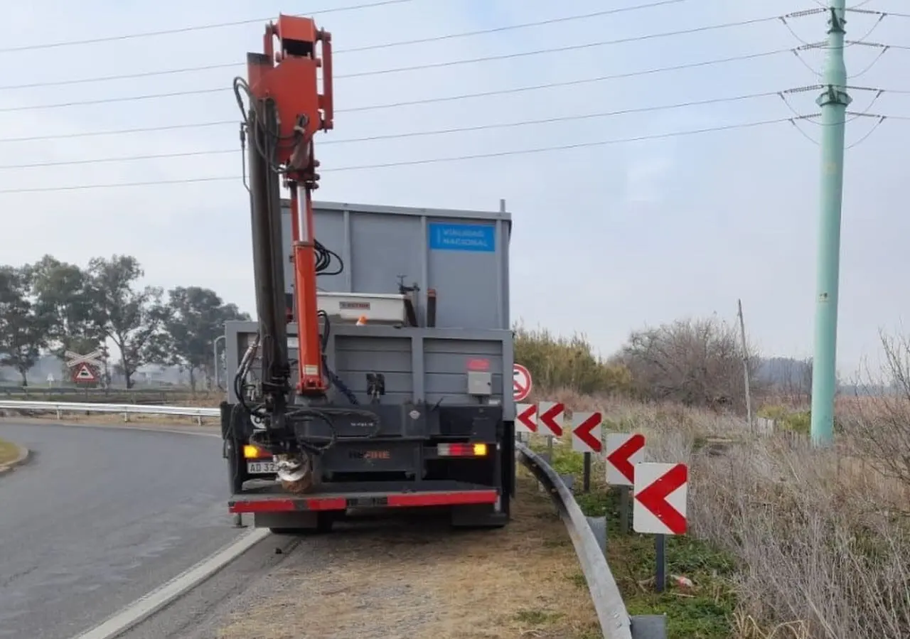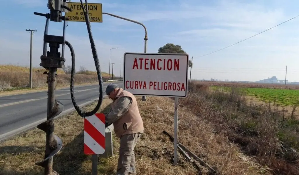 Por otro lado, la cuadrilla de Señalamiento trabaja en la zona de Pérez, sobre la pronunciada curva en el cruce ferroviario en la salida hacia Zavalla de RN 33. En el lugar se reforzó la cartelería preventiva de velocidad máxima de circulación y la advertencia de la curva presente. Asimismo, se renovaron las barandas metálicas de protección y se fortaleció la visualización de los giros con carteles reflectantes. Durante esta mañana el mejoramiento de la señalización del lugar se completará con la colocación de tachas reflectantes en el eje y borde de la calzada.