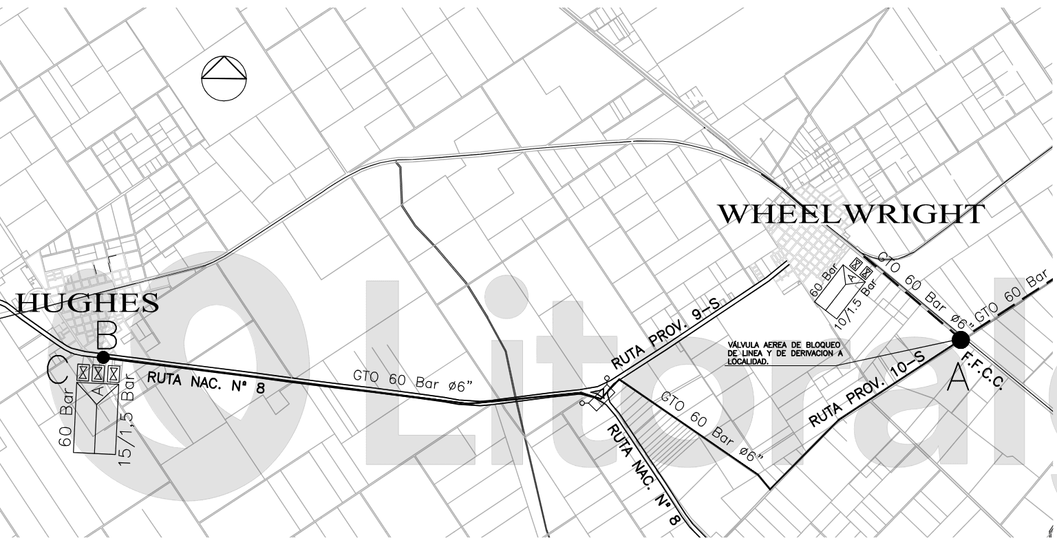 En el marco del Plan de Gasoductos para el Desarrollo, la obra ha realizarse contempla una extensión total de 16 kilómetros, compuesta por 15,4 km de cañería de 6 pulgadas y 580 metros de 3 pulgadas, con una Estación Reguladora de Presión (ERP) de 60/15/1,5 bar y una capacidad de diseño de 5.200 m³/h, con un presupuesto oficial de $2.008.529.533. En una primera etapa, el suministro estará orientado al Frigorífico Black Bamboo, el Centro Agropecuario Modelo (CAM), la Asociación de Cooperativas Argentinas (ACA) y la aceitera Ser Agro. En su etapa final, el gasoducto abastecerá a toda la localidad de Hughes. El comitente de la obra es Santa Fe Gas y Energías Renovables SAPEM (Enerfe).