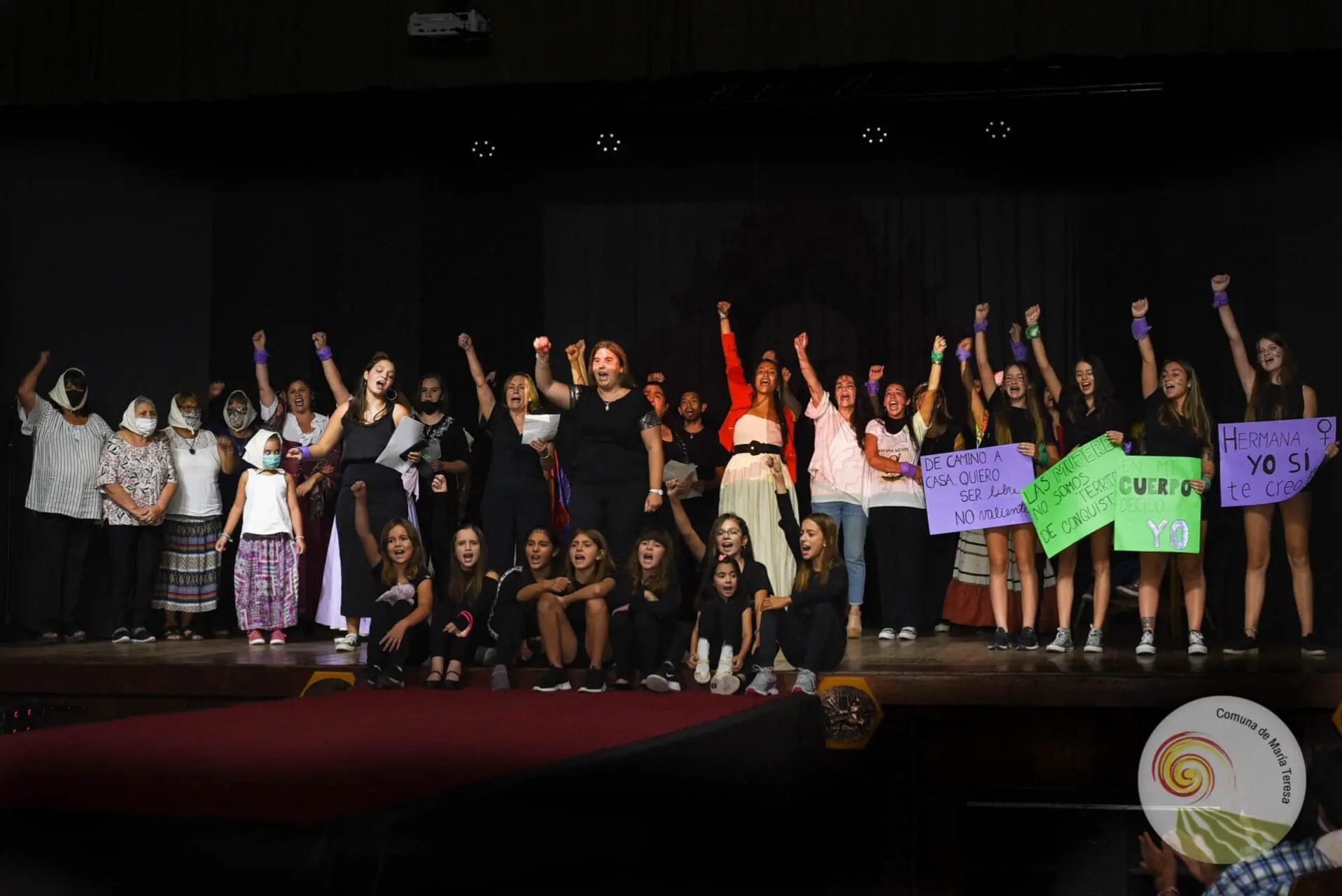 «La idea de la puesta surge desde el Área de la Mujer de la Comuna de María Teresa. Hace unos años ya habíamos presentado algo similar, y el año pasado para el 8M lo preparamos y presentamos en nuestro pueblo. Utilizando herramientas artísticas, contamos historias de mujeres que demostraron valor en la lucha por conseguir derechos, algunas muy conocidas y otras invisibilizadas», relató Mónica De Dio, directora del evento.