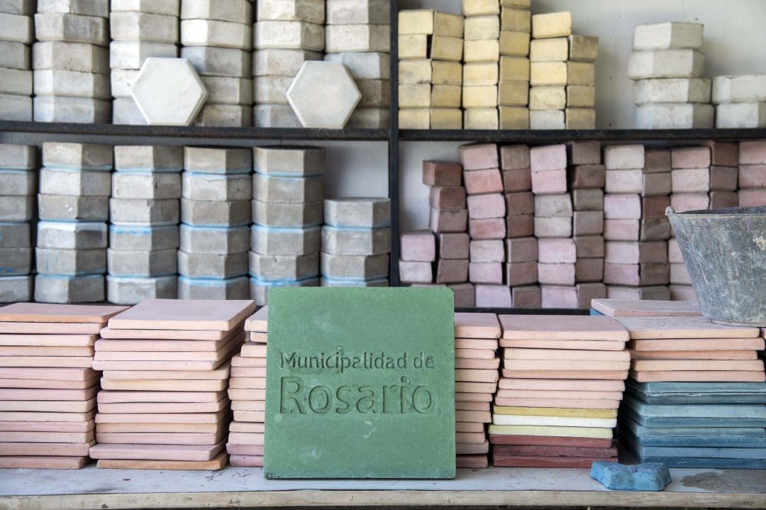 Las baldosas que conformarán los corredores del programa «Veredas con Propósito» serán producidas por jóvenes que forman parte de Parada Oeste (bulevar Seguí 6652), un centro de producción y capacitación donde se forman a través de la Escuela de Oficios de la Municipalidad de Rosario y la Universidad Nacional de Rosario (UNR), integrando de esta manera capacitación, trabajo colectivo y nuevas propuestas de urbanismo para la ciudad.