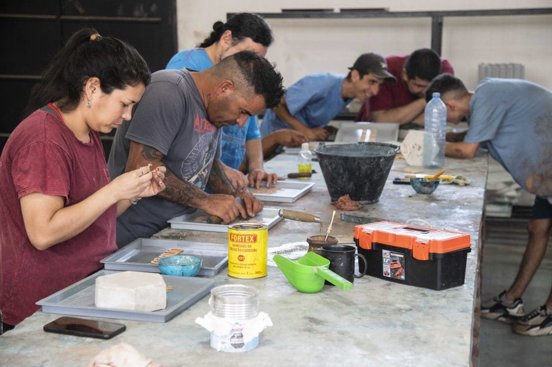 Actualmente son siete jóvenes quienes trabajan todos los días entre cinco y seis horas en la producción de baldosas. “Llegaron a capacitarse en distintas instancias y conformaron, de hecho te diría, una cooperativa”, contó Manassero, y agregó: “Llegaron movilizados por la inquietud de hacer algún oficio, de capacitarse. Y hoy hay un pequeño taller o empresa social que da trabajo a siete jóvenes”.