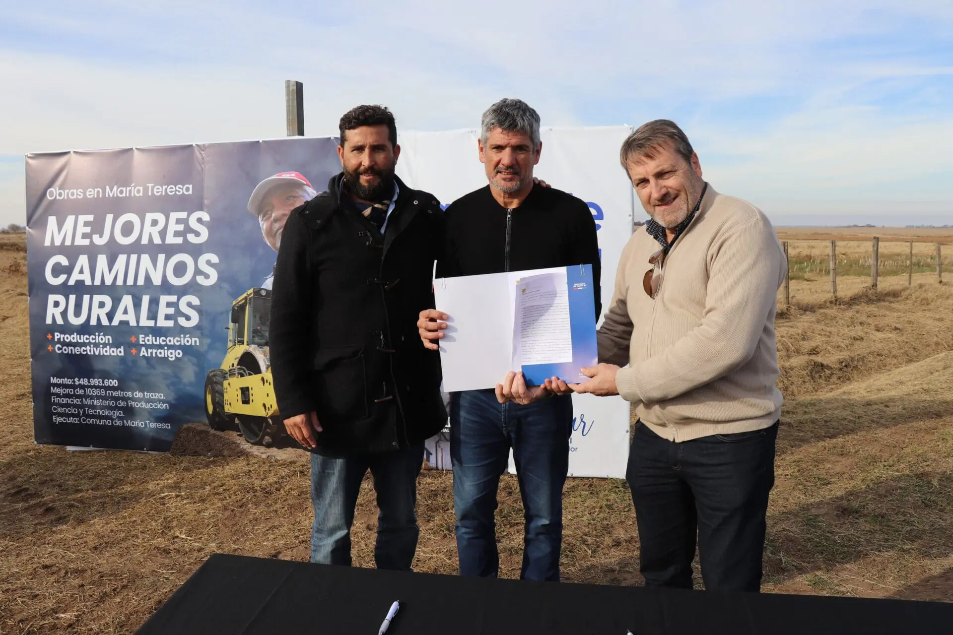 Posteriormente, la comitiva provincial celebró un convenio en la localidad de María Teresa para la concreción de una traza de 10.368 metros, que demandará una inversión superior a los 48 millones de pesos y beneficiará a un productor ganadero, siete agricultores y a un tambo.