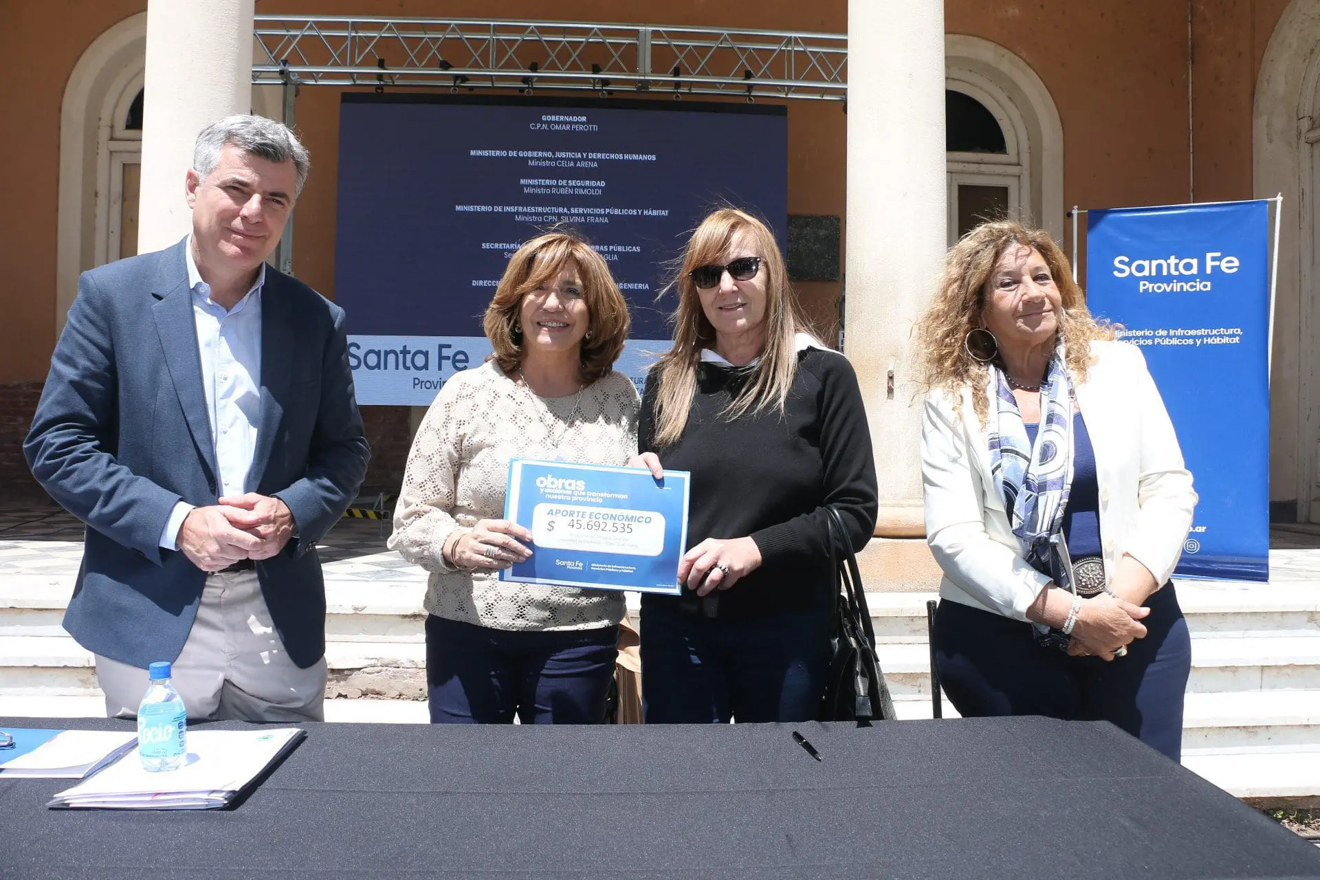 La ministra de Infraestructura, Servicios Públicos y Hábitat, Silvina Frana, entregó aportes para la ejecución de obras de saneamiento por un monto que supera los 122 millones de pesos, a las localidades de Teodelina ($6.289.973,98), y Elortondo ($45.692.535,96), y al Comité de Cuenca Laguna La Picasa y Canal Alternativa Norte ($70.201.311,75).