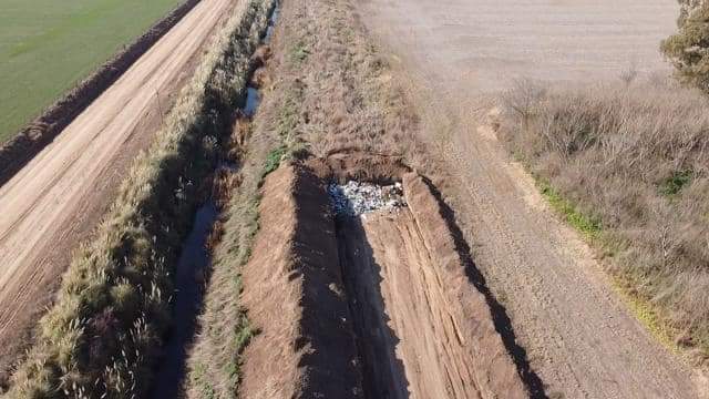 “Se disponen los residuos en una cava y se los va cubriendo con tierra. La cava tiene unos 3 metros de profundidad. Se colocan 70 cm de residuos y 40 cm de tierra”, explicó el presidente comunal Gonzalo Goyechea.