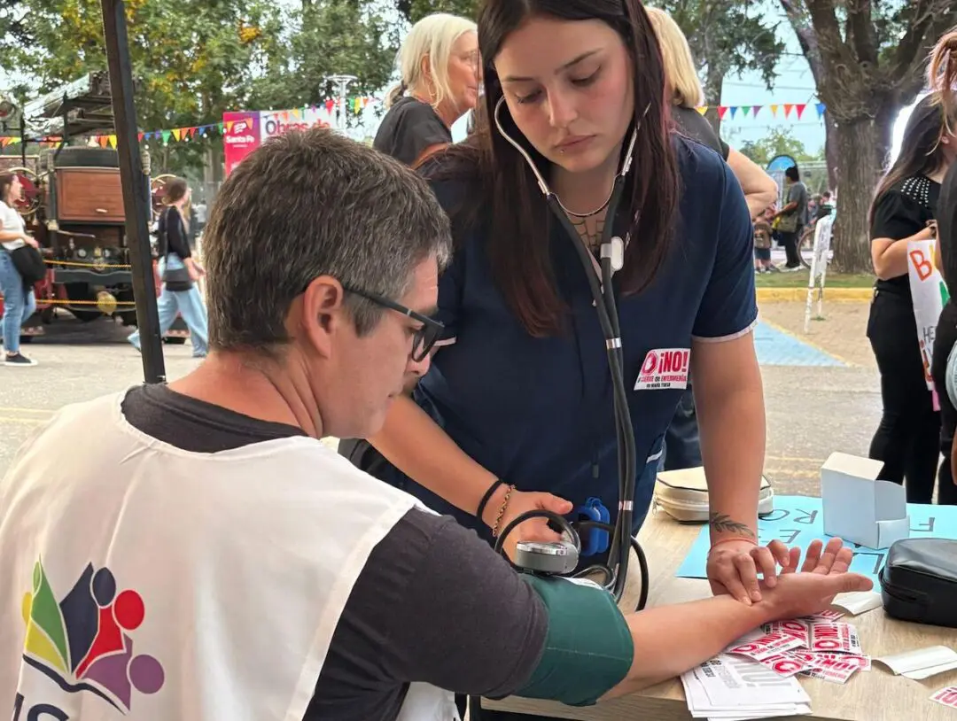Profesionales egresadas de la tecnicatura realizaron una carpa sanitaria en Venado Tuerto para visibilizar el reclamo y defender la continuidad de la formación en salud en la localidad.