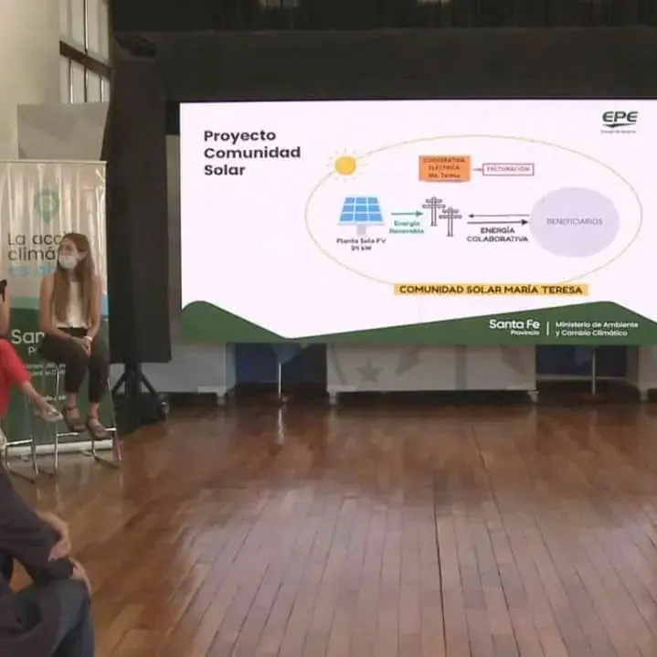 El jueves 2 de diciembre la Comuna de María Teresa presentó en Rosario, el proyecto Comunidad Solar en el marco de Energía Renovable Colaborativa, el mismo consiste en la instalación de paneles solares que generarán energía que beneficiará al Centro de Jubilados, a la Biblioteca Moreno, a la Residencia de Adultos Mayores y a la Huerta Taller El Sol.
