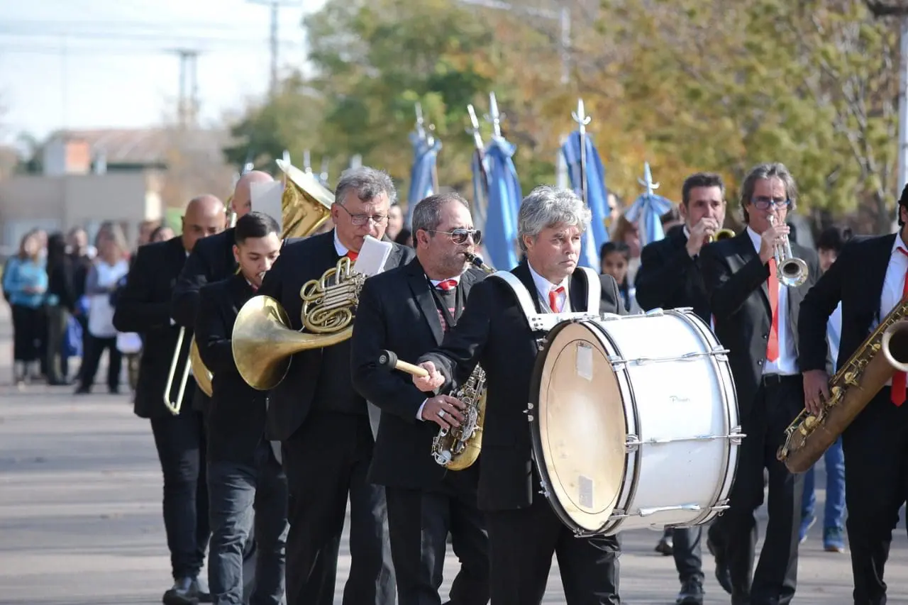 Ya en el predio destino, se llevó a cabo el acto institucional con palabras del presidente Comunal Gonzalo Goyechea. «Es un momento muy emocionante para nuestro pueblo. No es un aniversario cualquiera, son 120 años de una historia en común, de una historia compartida. Esta fecha pone en escena un trabajo colectivo, porque a partir de los primeros edificios que comenzaron a construirse en 1902 en este lugar, nada fue individual. Todo fue un trabajo en comunidad y así tenemos que seguir trabajando», destacó el mandatario local.