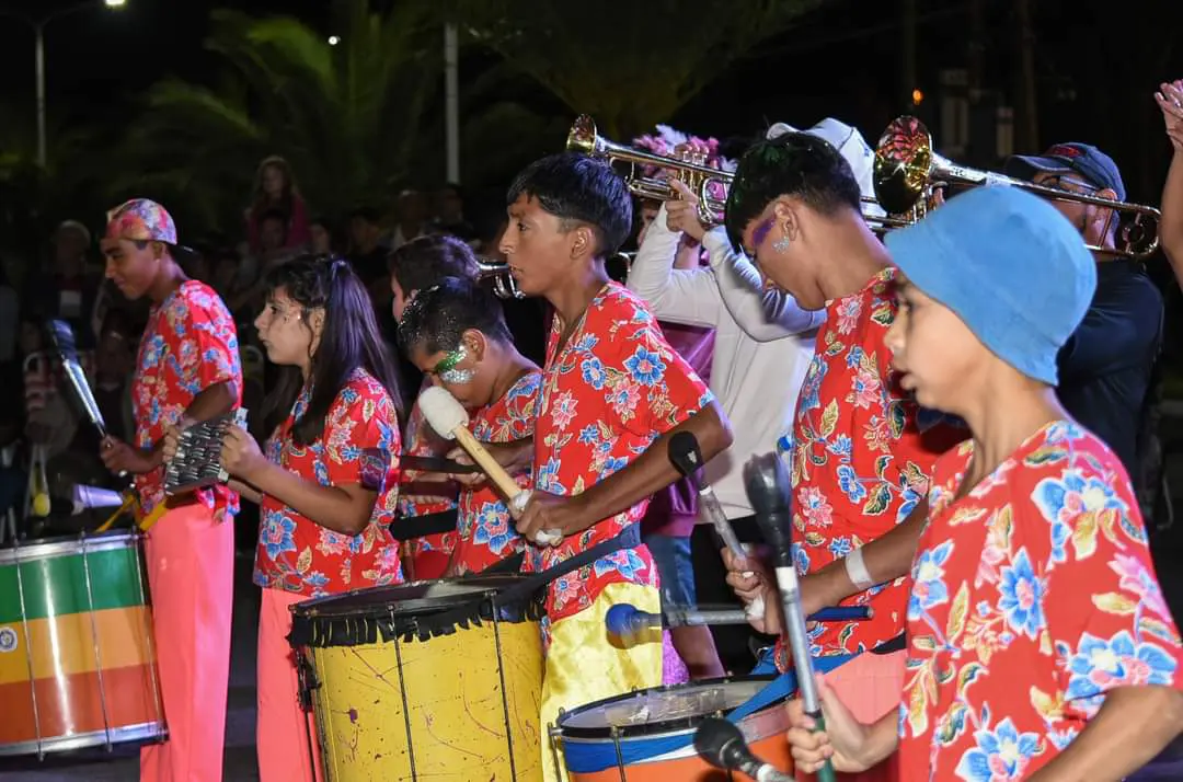 La segunda de las noches de celebración, al igual que la del lunes, estuvo cargada de intensa alegría. Además de todos los números artísticos anteriormente mencionados y la batucada «Los Rebuscados» de la localidad de San Gregorio, se sumó el cierre musical a cargo de «La 4.40», banda ganadora del pre Cosquín Cuarteto 2023, y la «Banda de Alvarito», originaria de Venado Tuerto y con gran recorrido regional.