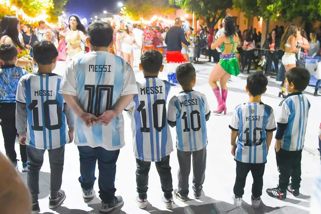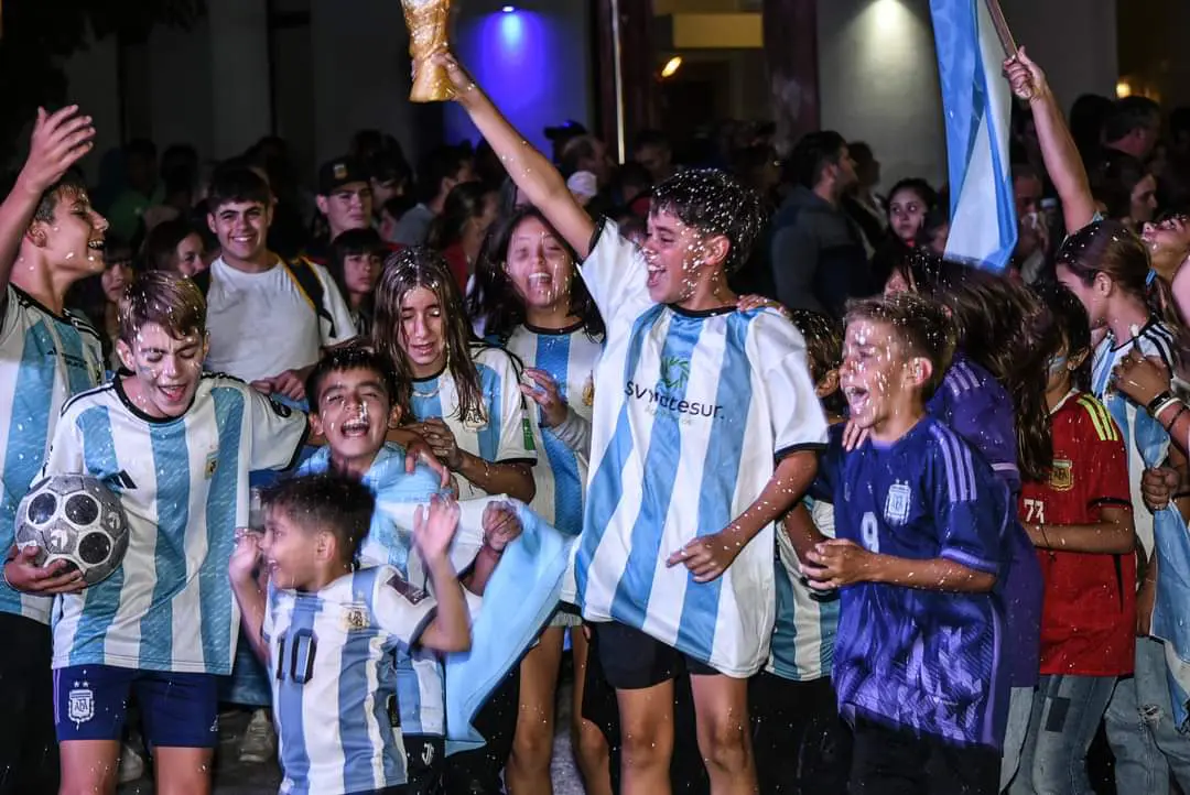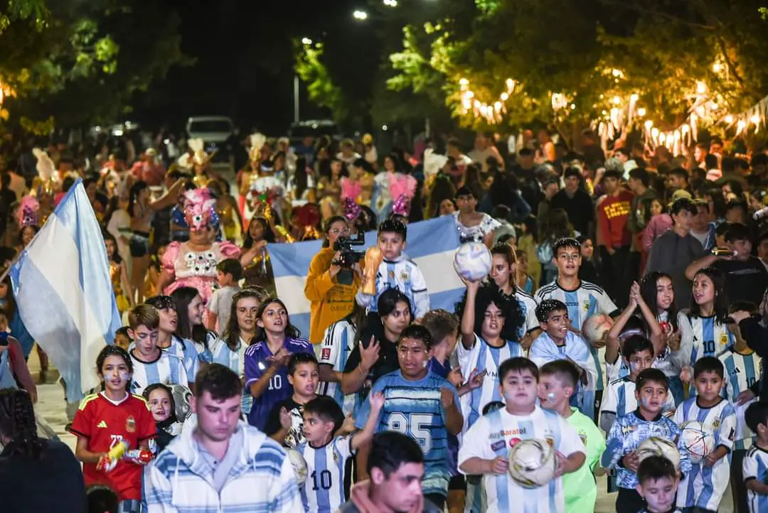 El tributo a la selección argentina no se hizo esperar. Las banderas y camisetas albicelestes con el 10 de Messi en la espalda se mezclaron con los colores de la noche para homenajear a quienes salieron campeones del mundo en Qatar 2022. Los protagonistas de esta presentación fueron pequeños deportistas de los clubes locales, Sportivo María Teresa y Nueva Era Sporting Club.