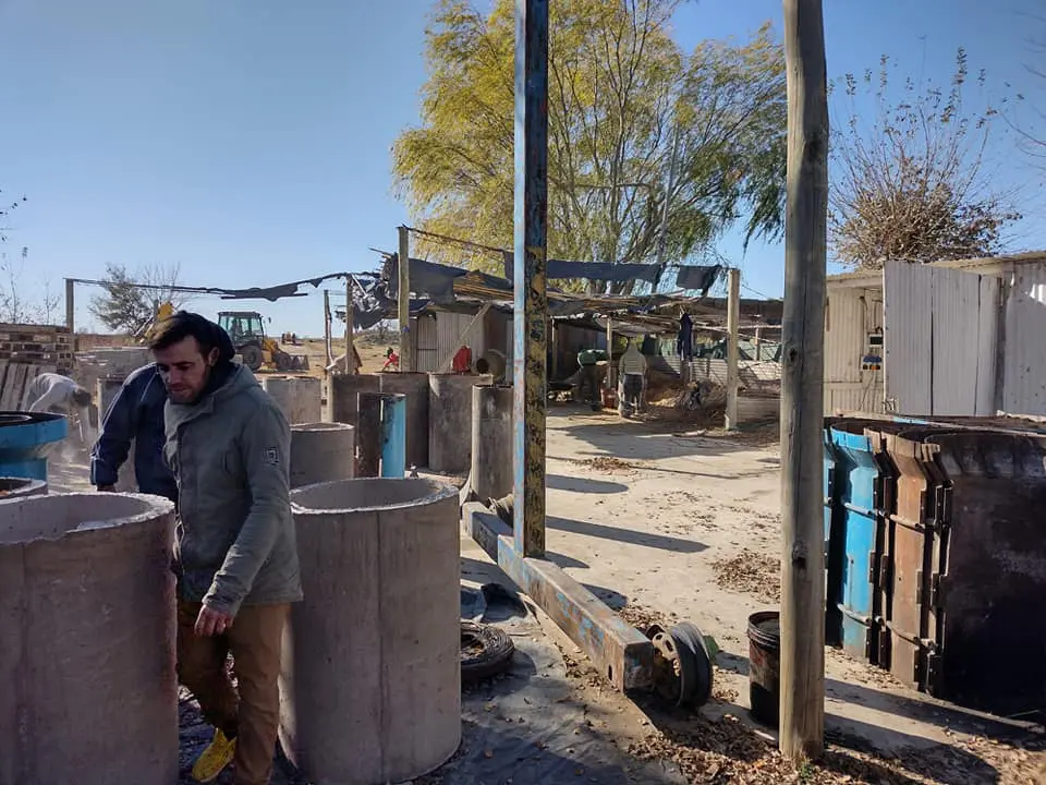 En el predio del Tiro Federal, la Comuna de Melincué logró buenos estándares de eficiencia (en tiempo de producción y costos) por el excelente trabajo del personal en la fabricación de tubos de alcantarillas y adoquines para las calles y además entre otras cosas, por la compra de material a granel.