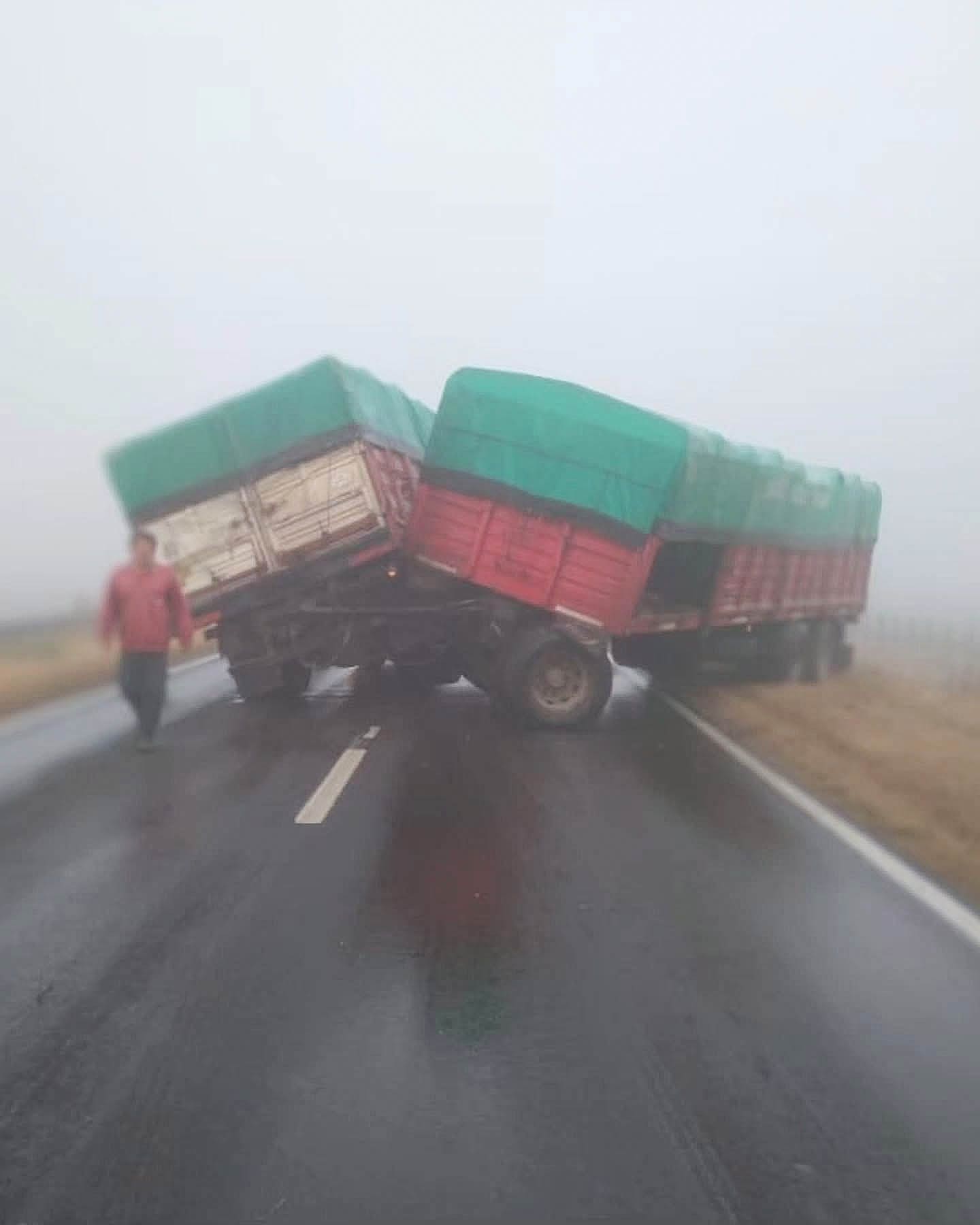 Más tarde, en el cruce de la Ruta 33 con la Ruta Provincial 94 —acceso a Carmen— se registró otro siniestro menor, seguido de una sucesión de choques entre camiones entre los kilómetros 641 y 643, sin reporte de heridos graves hasta el momento.