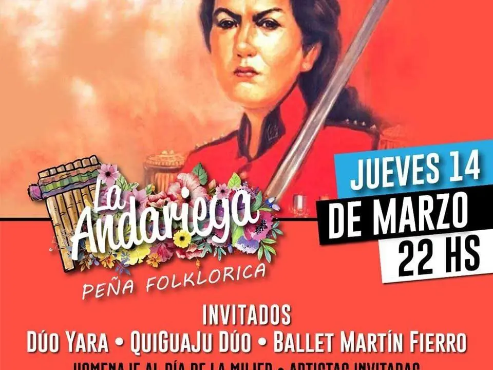 Este jueves 14 de marzo, a partir de las 22, habrá una nueva edición de peña folclórica «La Andariega» en 1927 Multiespacio (Av. Casey 435), y por supuesto con grandes artistas.