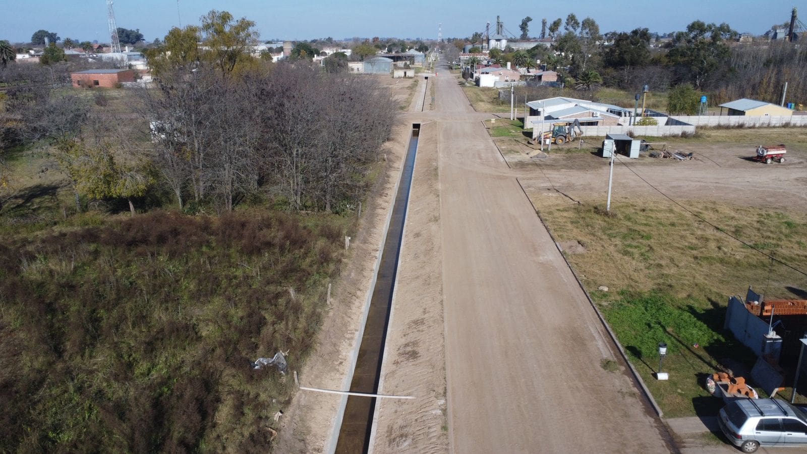 A su vez, explicó que la continuación del canal de calle Lisandro de La Torre en zona rural se desarrolló en la cuneta oeste del camino comunal para facilitar su descarga en el canal aliviador “El Hinojo”, que luego deriva los excesos hídricos en el Canal San Urbano.
