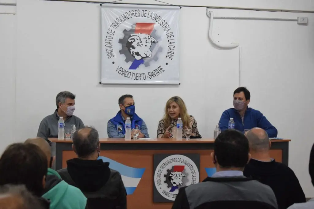 Luego, en el sindicato de los empleados de la carne, se reunió con representantes gremiales con Cristian Crudelli, Secretario General de los trabajadores de la Industria de la Carne y miembros de Uatre, SMATA, Camioneros (Sector de Juan Chulich), Bancarios para la Victoria, Sutracovi, Soiva, ATE y Correos, quienes expresaron su apoyo a lista Celeste y Blanca del Frente de Todos.